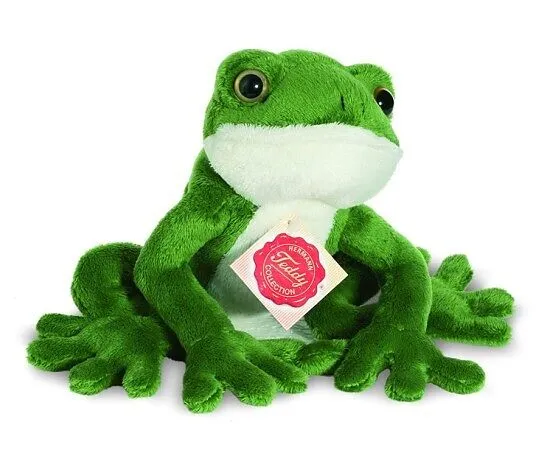 Frosch, 15 cm. Aus hochwertigem Wirkplüsch gefertigt und mit kuschelweicher Polyesterwatte gefüllt.