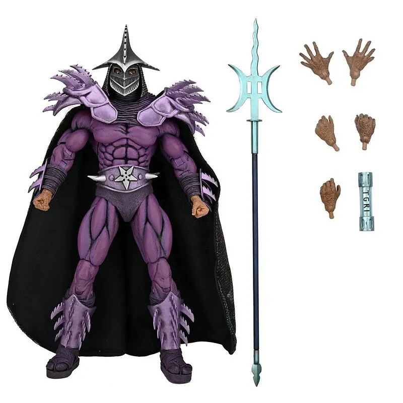 schwarz/lila, bedruckt, 100 % Kunststoff, von NECA, in Geschenkverpackung. Design: Offiziell lizenzierter Teenage Mutant Ninja Turtles Artikel zum Film Secret of the Ooze Maße: ca. 18 cm Details: mit einem Gürtel, Stoffumhang, austauschbaren Händen, ein Bisham...