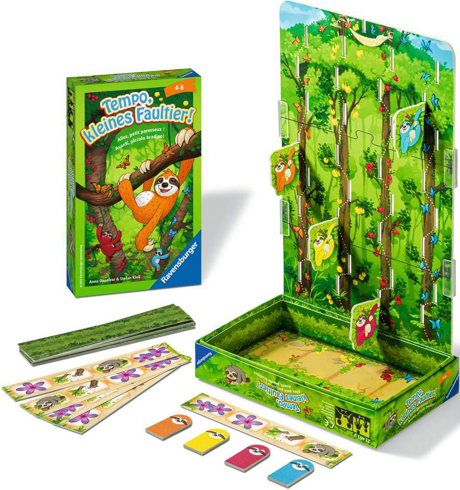 Faultiere sind faul Von wegen! Weil ganz oben im Dschungel eine gemütliche Hängematte baumelt, verabreden sich die vier kleinen Faultiere zu einem Wett-Klettern. Jetzt geht es senkrecht an den Bäumen nach oben!Jeder Spieler sucht sich sein Lieblingsfaultier au...