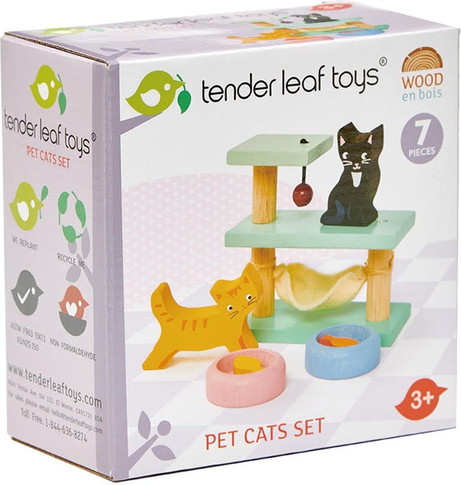 2 kleine Katzen, schwarz und rothaarig, mit einem Katzenbaum und einem Ball, um sich zu amüsieren. Mit 2 verschiedenfarbige Schalen mit je einem Fisch zum Abendessen. - Material: Holz, Textil - Geeignet für alle Holzpuppenhäuser im Maßstab 1:12. Tender Leaf Ho...