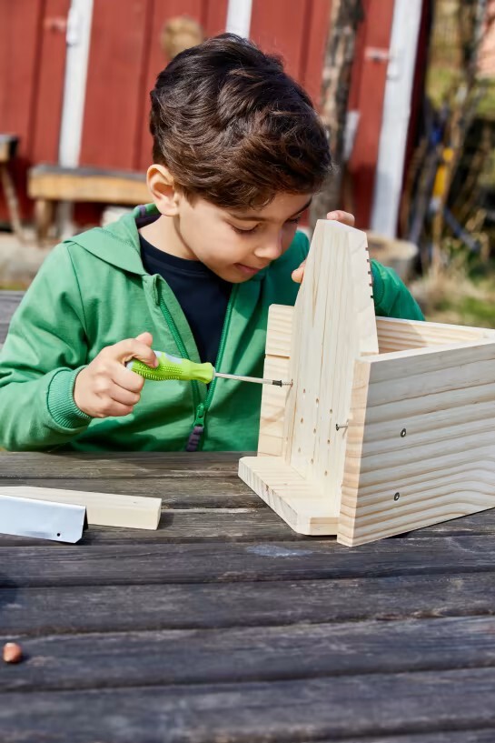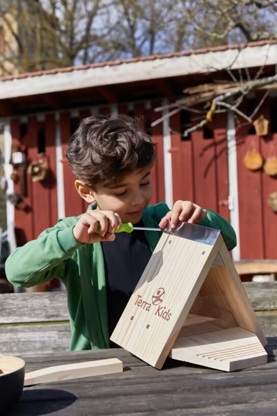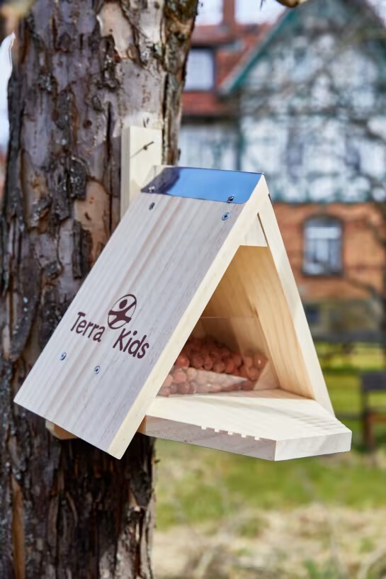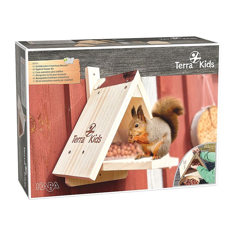 Kleine Outdoor-Abenteurer können mit diesem Bausatz ein Futterhaus für Eichhörnchen bauen und somit bereits zu Artenschützern werden. Das Futterhaus aus Holz aus der HABA Terra Kids-Reihe kann kinderleicht von vorne befüllt werden. Die Front wird mit einer Acr...
