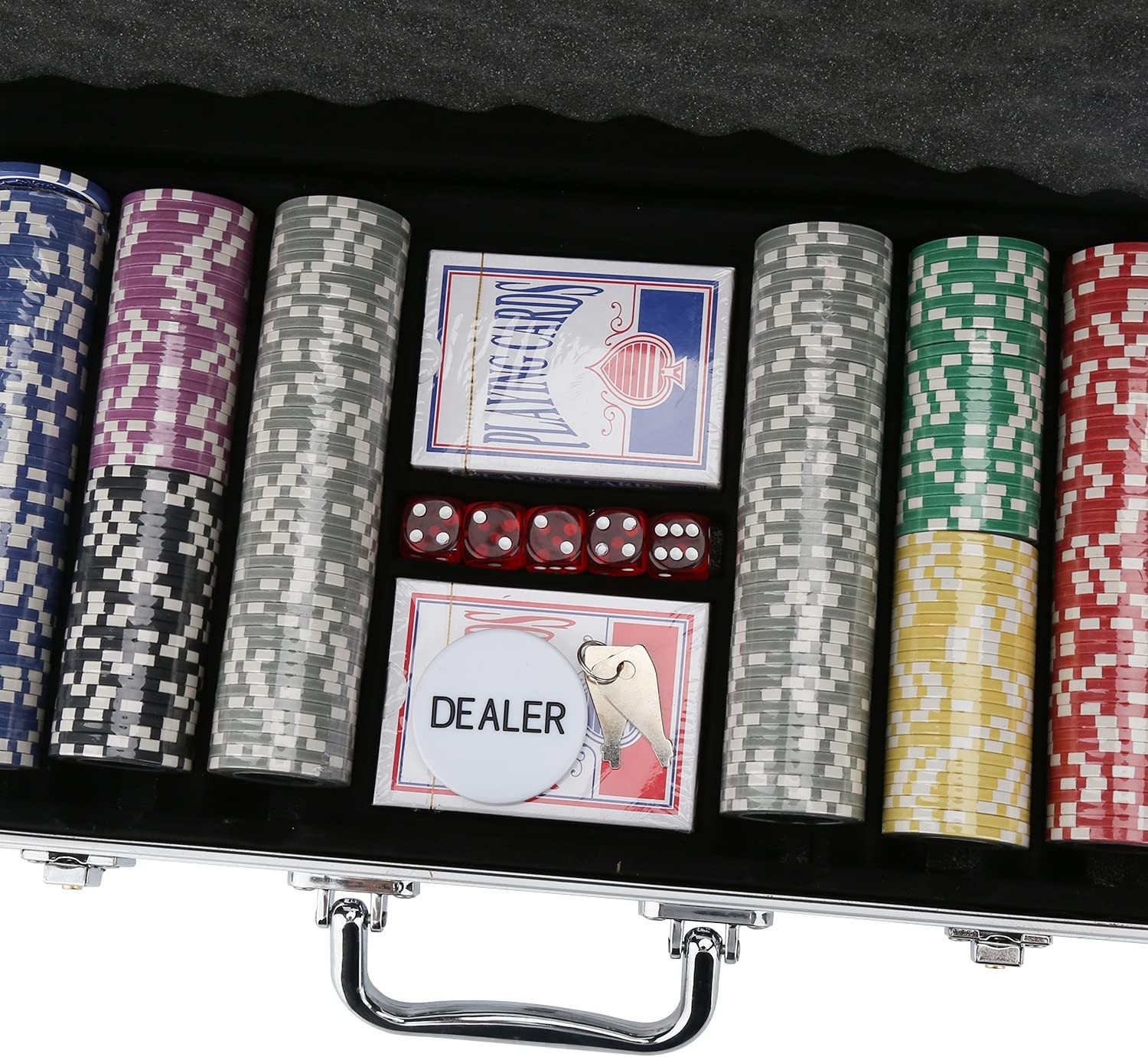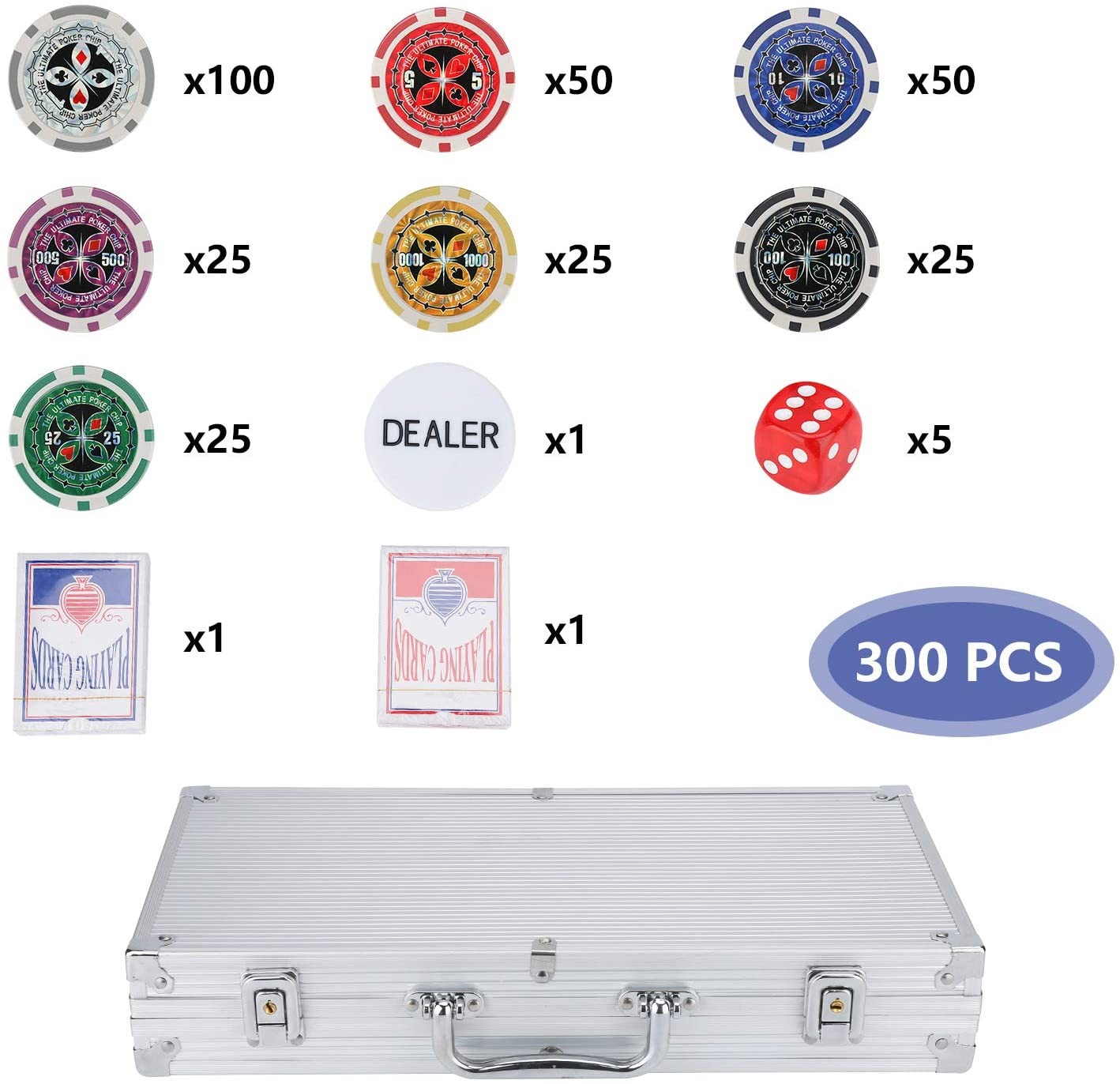 Casino Feeling für zu Hause oder spannende Pokerabende mit Freunden: Das Profi-Set beinhaltet 2 Decks Premium Pokerkarten, 300 Casino-Pokerchips, 5 Casino-Würfel, 3 Buttons (Dealer, Small Blind, Big Blind) sowie eine Spielanleitung. Durch den hochwertigen und ...