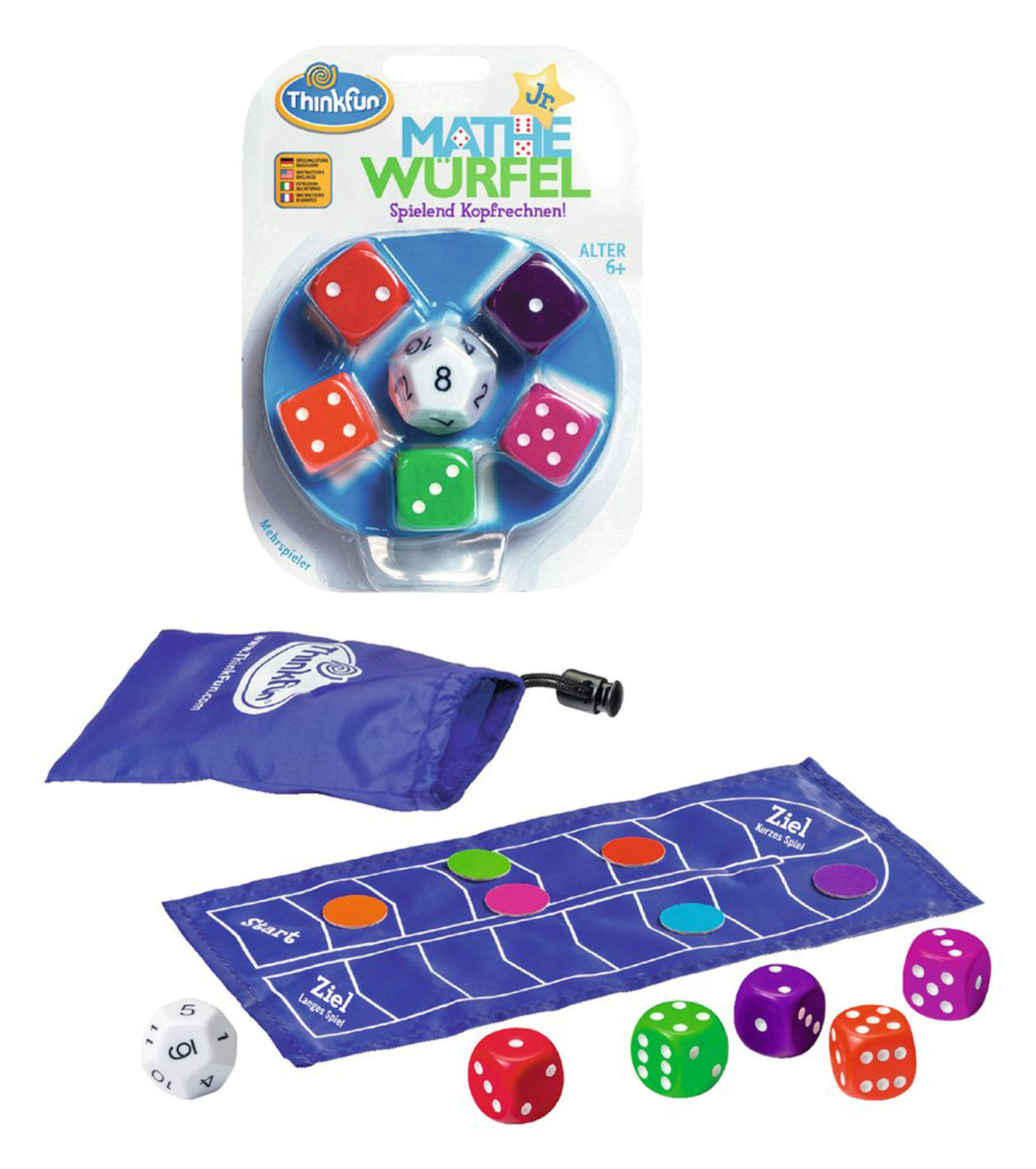 Mathe Würfel - Das beliebte Rechenspiel gibt es bereits für Kinder ab 6 Jahren! Zuerst heißt es, den zwölfseitigen Würfel zu würfeln, um eine ziel Zahl zwischen 1 und 12 zu erhalten. Danach werden dann die fünf bunten Gleichungswürfel (1-6) gewürfelt. Nun gilt...