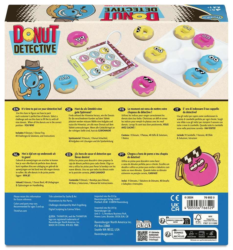 Donut Detective bietet knifflige Rätsel für alle Nachwuchs-Ermittler ab 5 Jahren! Dieses Logikspiel ist perfekt, um den Spürsinn und die Kombinationsgabe junger Detektive zu fördern. Doch Vorsicht nicht jedes Donut-Puzzle ist so einfach, wie es zunächst schein...
