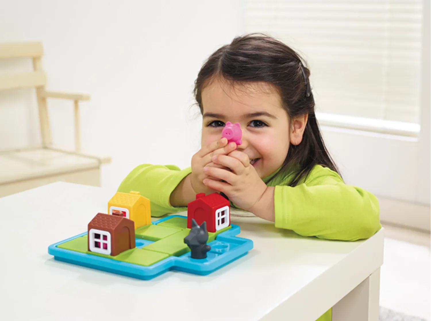 Es war einmal Kannst du den 3 kleinen Schweinchen helfen, ihr Haus zu bauen? Es gibt zwei spannende Spielvarianten: tagsüber musst du die Häuser um die Schweinchen herumstellen dann können sie herrlich im Garten spielen. Aber wenn es anfängt, dunkel zu werden ...