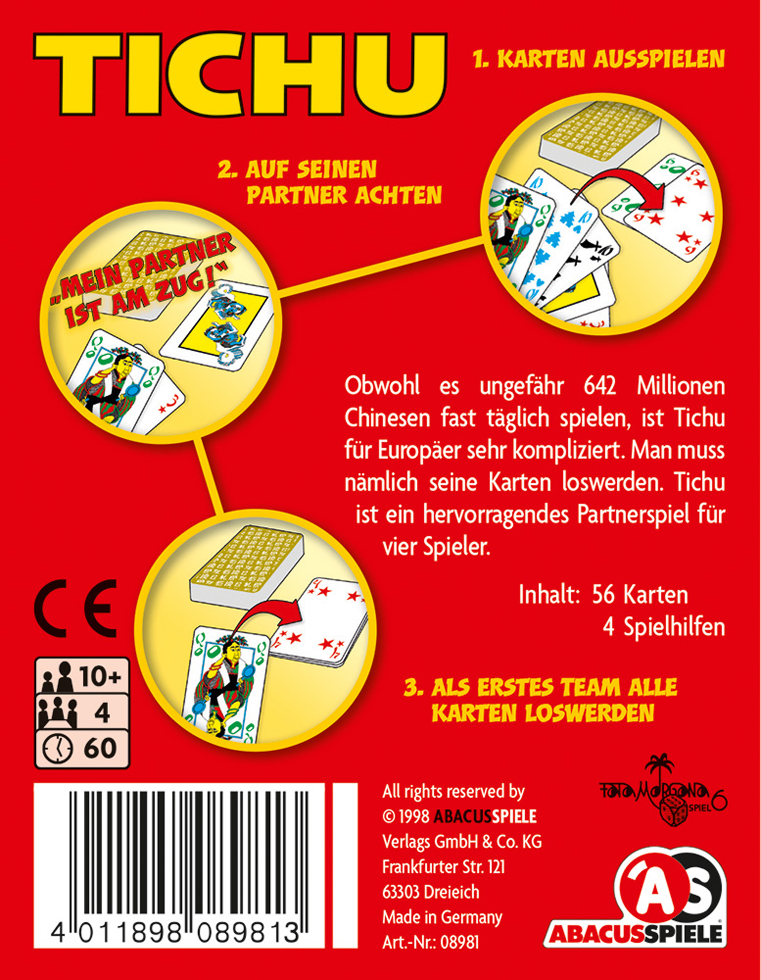 TICHU zählt mittlerweile zu den modernen Klassikern. Als ein Partnerspiel, bei dem die Spieler versuchen, als erste ihre Karten loszuwerden, erfordert es von den Spielern Einfühlungsvermögen. Ein spannendes Spiel, das sich trotzdem durch seine Leichtigkeit und...26 Kunden haben diesen Artikel kürzlich gekauft.