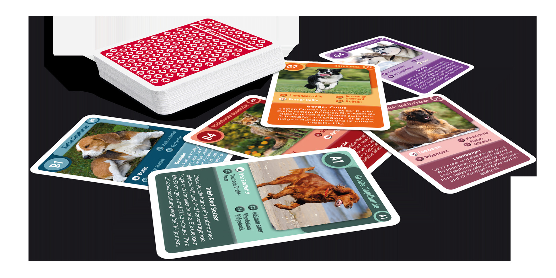 Ob Terrier, Pudel oder Schäferhund - viele Kinder wachsen mit Hunden auf und haben sie schätzen und lieben gelernt. Im ASS Altenburger Hundequartett sind die treuen Freunde des Menschen in 8 Kategorien zu finden.