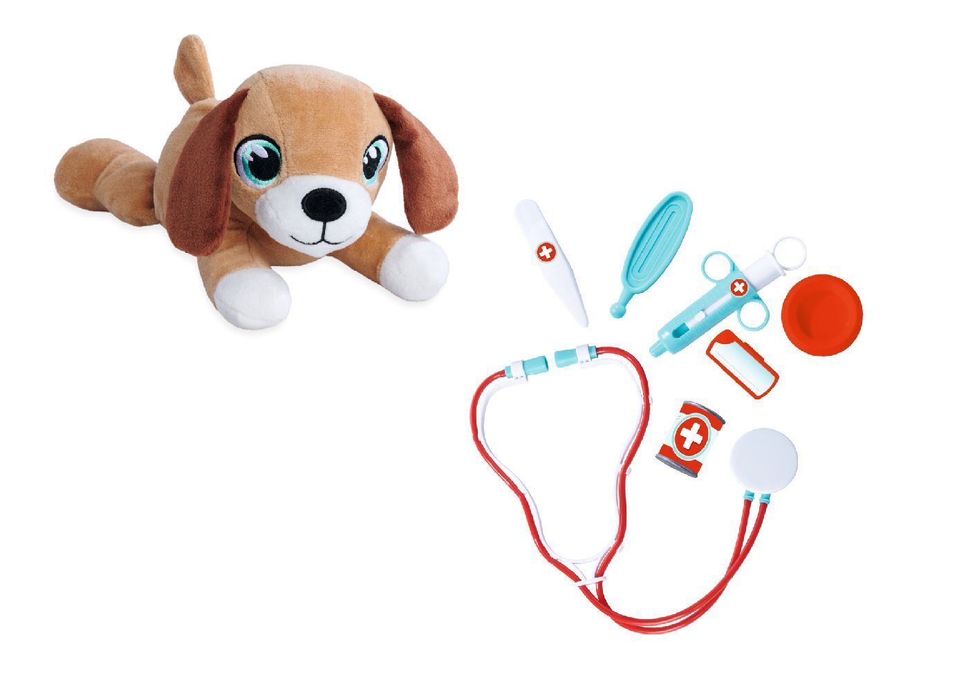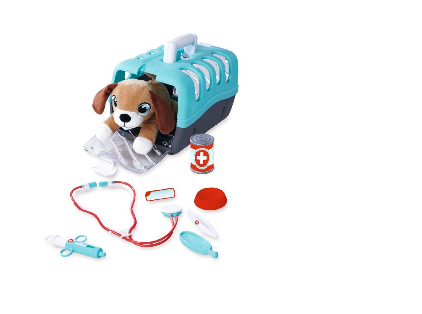 Mit dem modernen Tierarztkoffer sind eure Tiere immer bestens versorgt. Die blau-graue Transportbox mit Griff zum Tragen bietet dir alle nötigen Utensilien für eine Untersuchung deiner Lieblinge. Neben einem süßen braunen 24cm großen Plüschhund als ersten Pati...