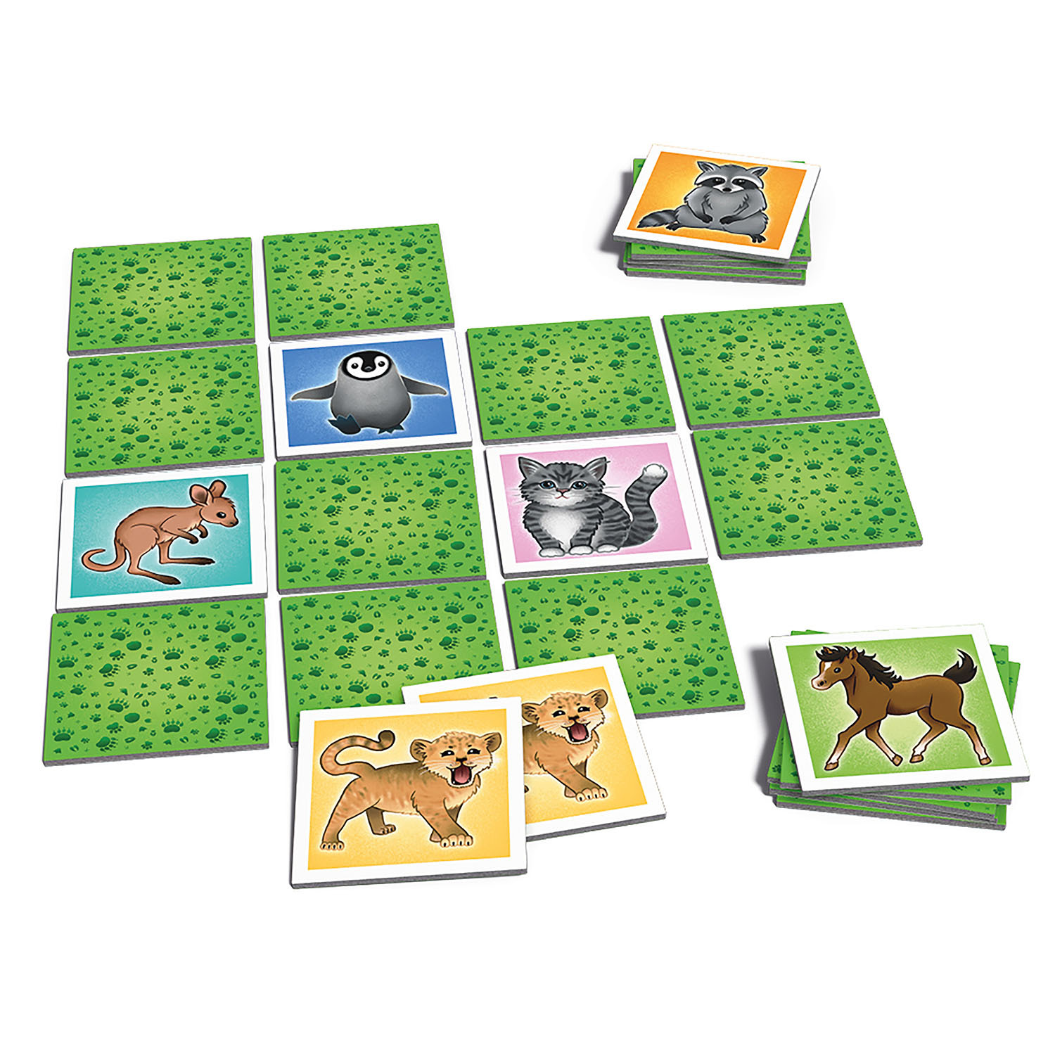 Versteckt sich unter dieser Karte vielleicht das niedliche Löwenbaby? Wohin haben sich die frechen Frischlinge schon wieder verkrochen? Welches Kind entdeckt als Erstes die flauschigen Entenküken? Wer sich jetzt besonders gut konzentriert, findet beim Kartensp...