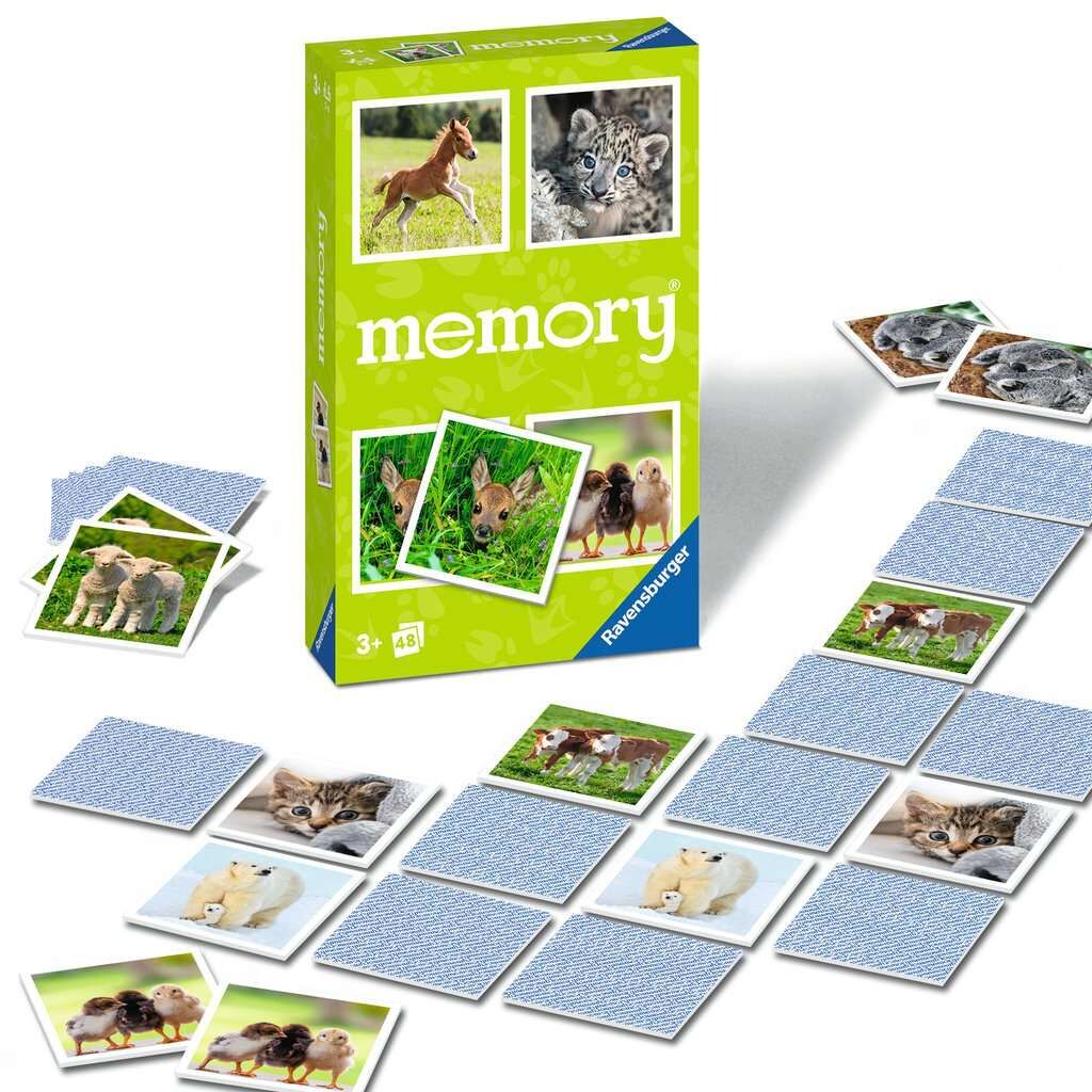 Ravensburger 22458 - Tierbaby memory®, der Spieleklassiker für Tierfans, Merkspiel für 2-6 Spieler ab 3 Jahren Rehkitz, Affenbaby, Fohlen! Kaum tauchen die goldigen Tierkinder auf, müssen sie wieder verschwinden. Bis einer mit der Zwillingskarte einen guten Fa...