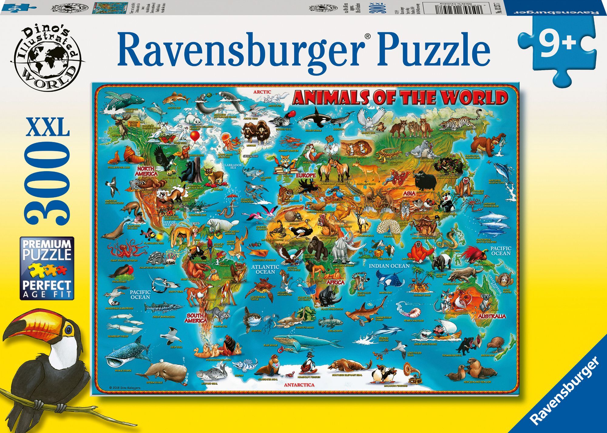 Ravensburger 13257 Puzzle Tiere rund um die Welt 300 Teile Altersgerechter Puzzlespaß im XXL-Format: Ein Tauchgang in bunte Unterwasserwelten, eine Zeitreise ins Land der Dinosaurier, eine Entdeckungstour in die Heimat von Tiger, Elefant & Co, oder ein zauberh...