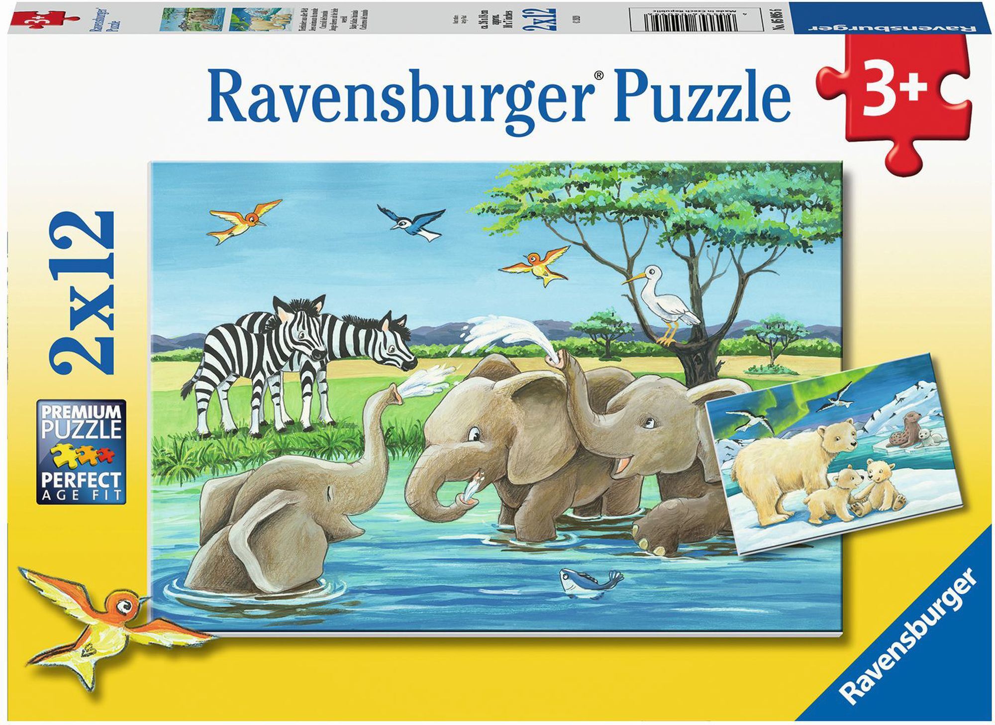 Ravensburger Kinderpuzzle - 05095 Tierkinder aus aller Welt - Puzzle für Kinder ab 3 Jahren, mit 2x12 Teilen Egal ob Pferd oder Kätzchen, Bagger oder Feuerwehrauto - die farbenfrohen Motive der Ravensburger Puzzlesets 2x12 Teile begeistern Mädchen und Jungen a...