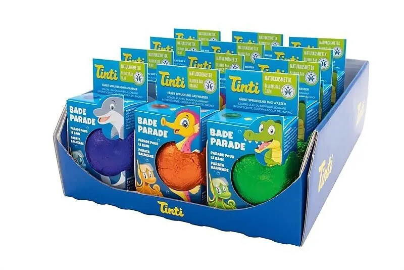 Ein lustiges Blubbern in leuchtenden Farben - dafür sorgt die Tinti Bade Parade, aus BDIH kontrollierten, natürlichen Inhaltsstoffen. Beim Öffnen der Packung gibt es einen Überraschungseffekt: Neben der Badekugel befindet sich eine Badebohne in der Verpackung....