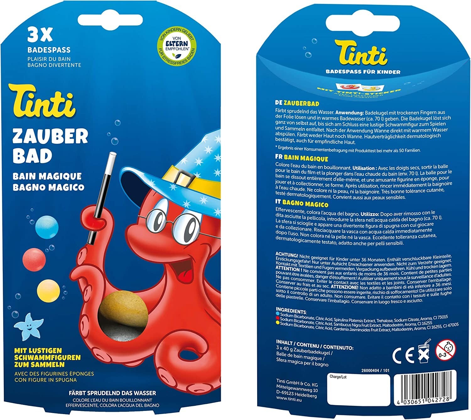 Bei diesem Badeerlebnis werden selbst die Kleinsten zu großen Zauberern. Die Badekugel färbt das Wasser blau, rot oder gelb und zaubert dabei eine lustige Schwammfigur zum Spielen und Sammeln hervor. Mit Tinti-Sticker zum Sammeln. Mit Natur- und Lebensmittelfa...