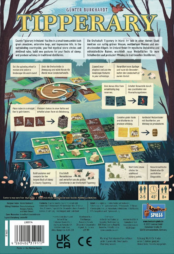 Tipperary ist ein familienfreundliches Plättchen-Legespiel mit irischem Thema. Durch geschicktes Platzieren ihrer Plättchen versuchen die Spieler, sich eine möglichst wertvolle Landschaft zusammenzupuzzeln. Doch allein der magische Steinkreis entscheidet, aus ...