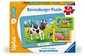 Mama Kuh ist mit ihrem Kälbchen auf der Weide, das Schwein knabbert an einem Kürbis, das Pferd entspannt mit dem Fohlen auf der Koppel - Puzzleteil für Puzzleteil entsteht eine der drei Bauernhofszenen. Schon kleine Hände können die sechsteiligen Rahmenpuzzles...