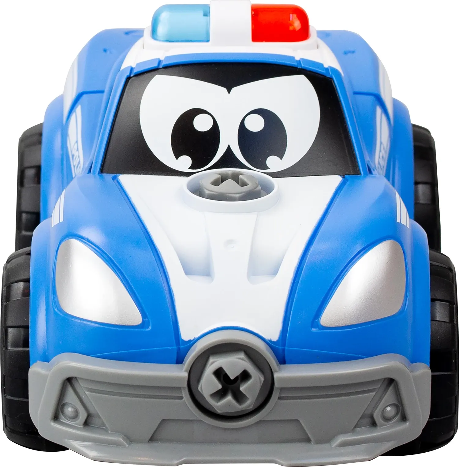 Ein ferngesteuertes Polizeiauto, das du selber zusammenbauen kannst! Der 2-in-1 Schraubenzieher ist sowohl ein Schraubenziehen wie auch die 2.4 GHz-Fernsteuerung. Das Auto fährt vorwärts und rückwärts.