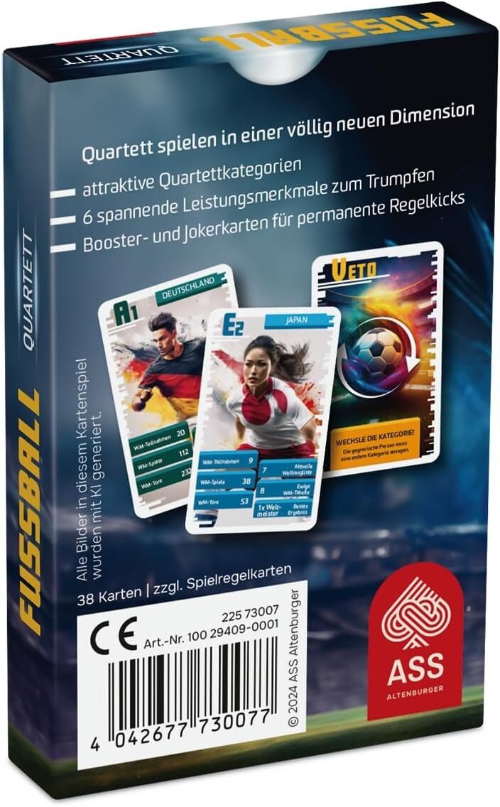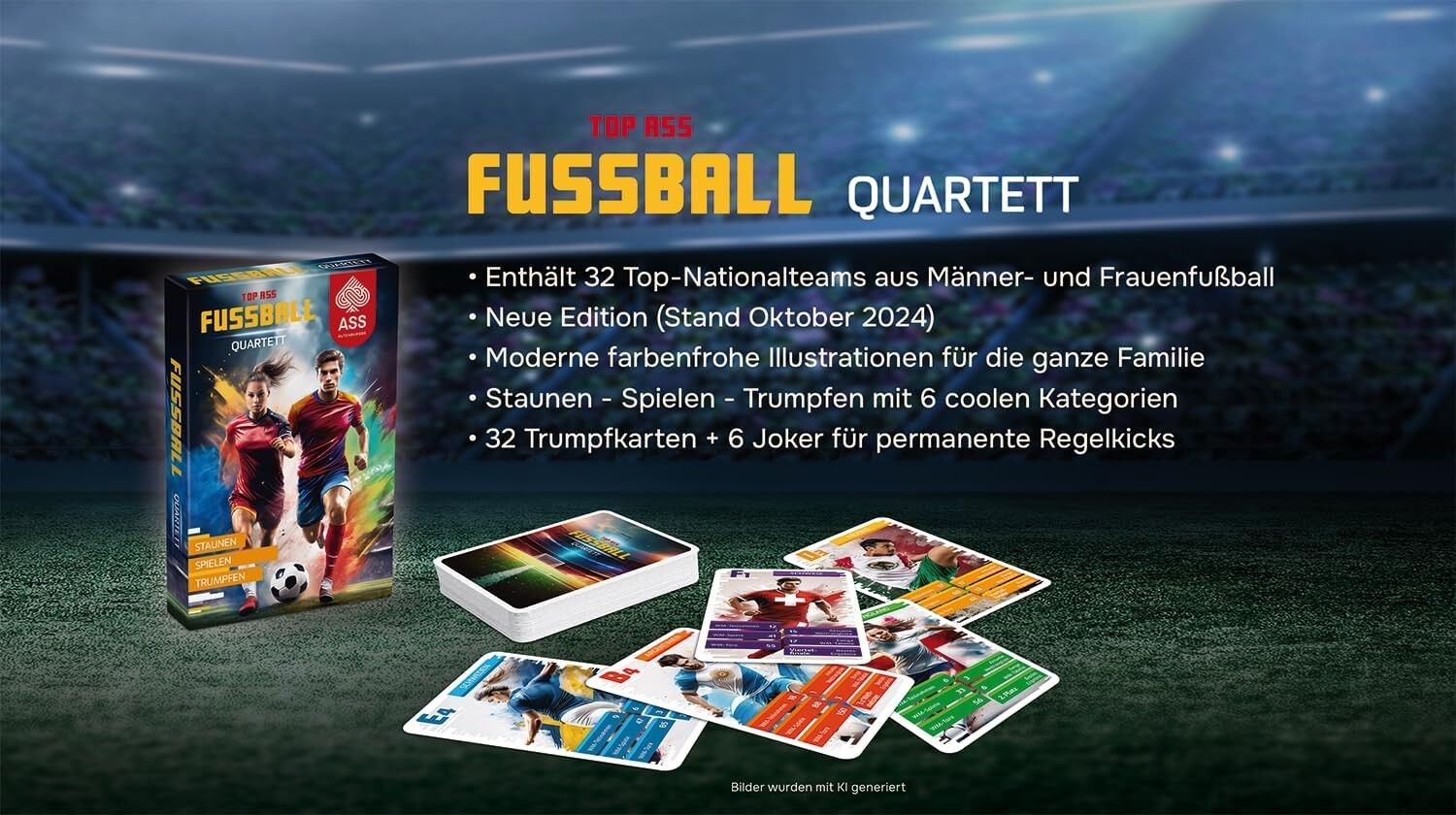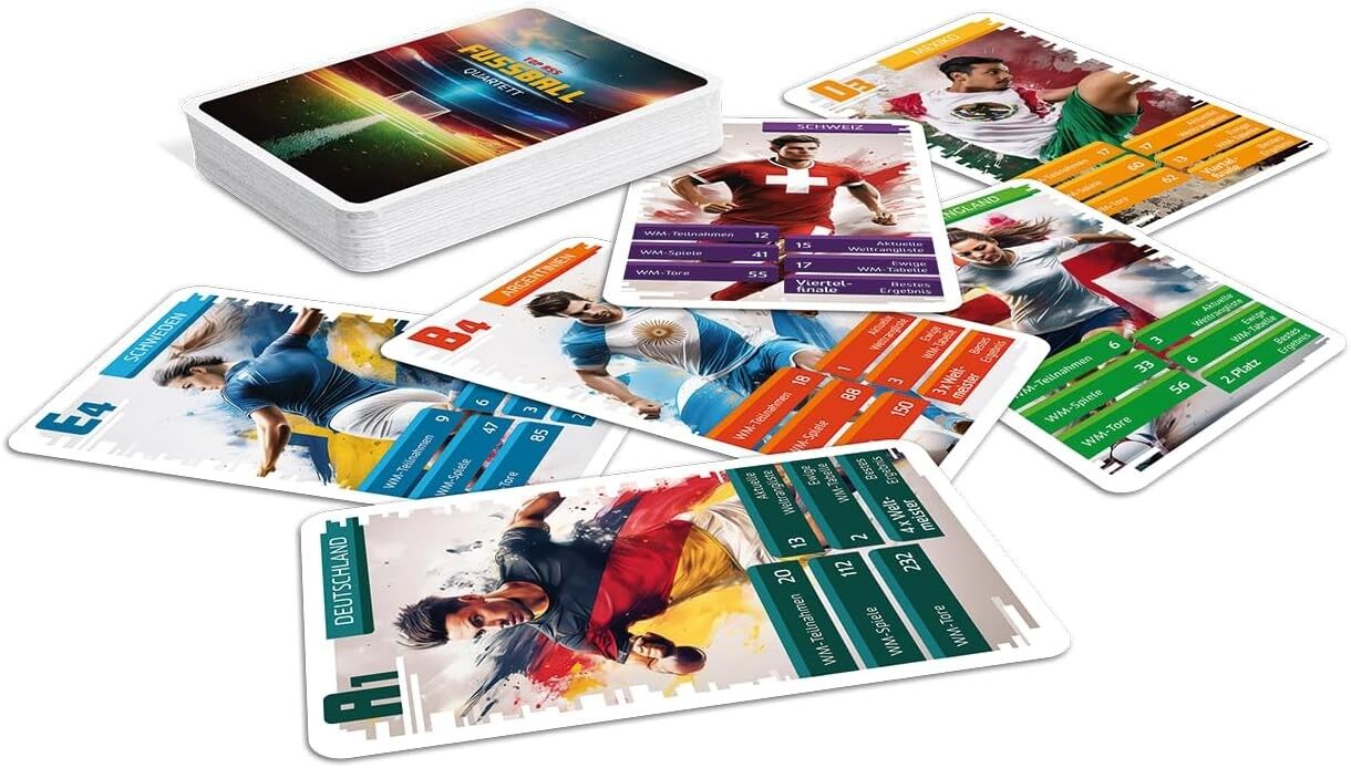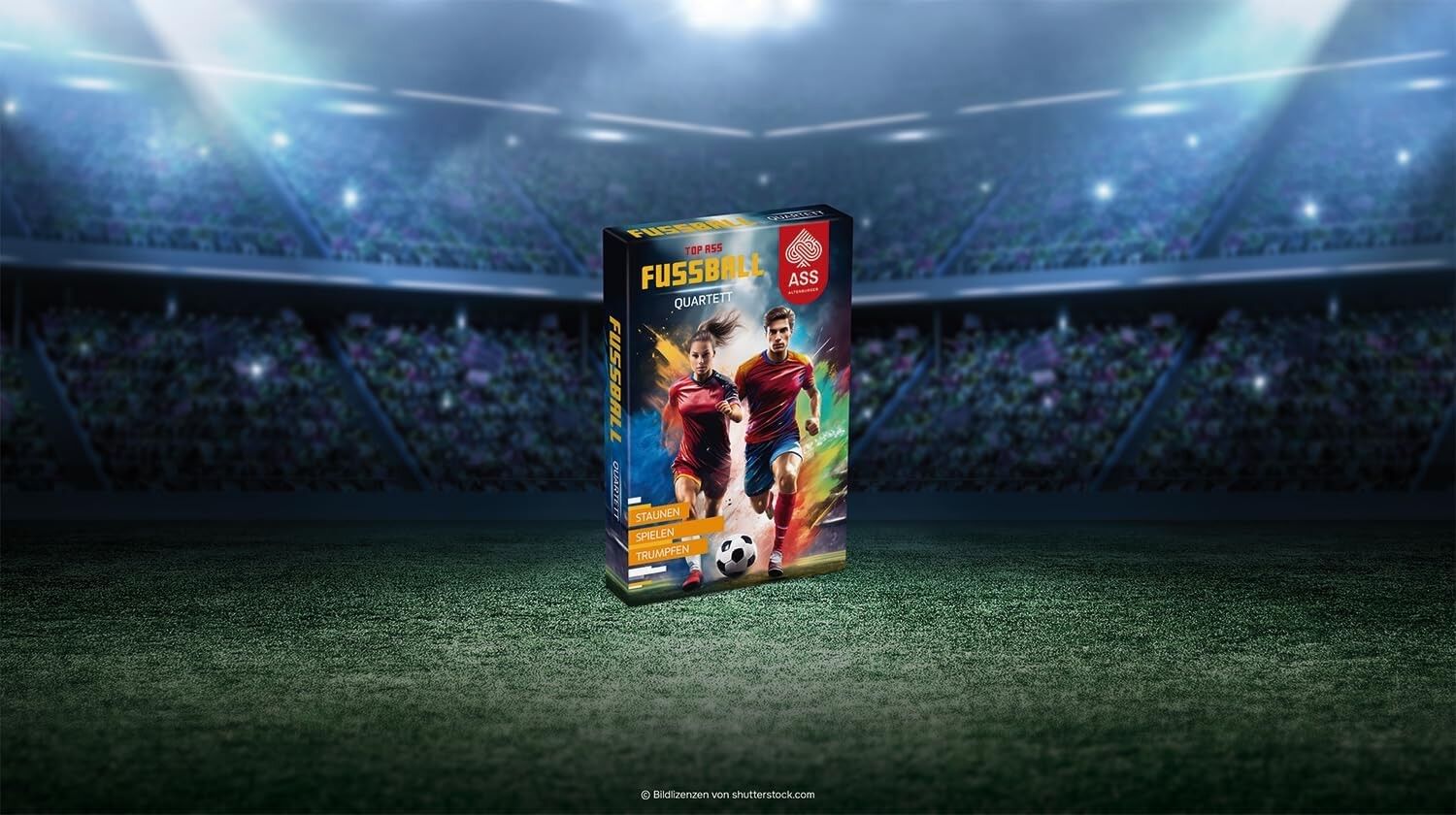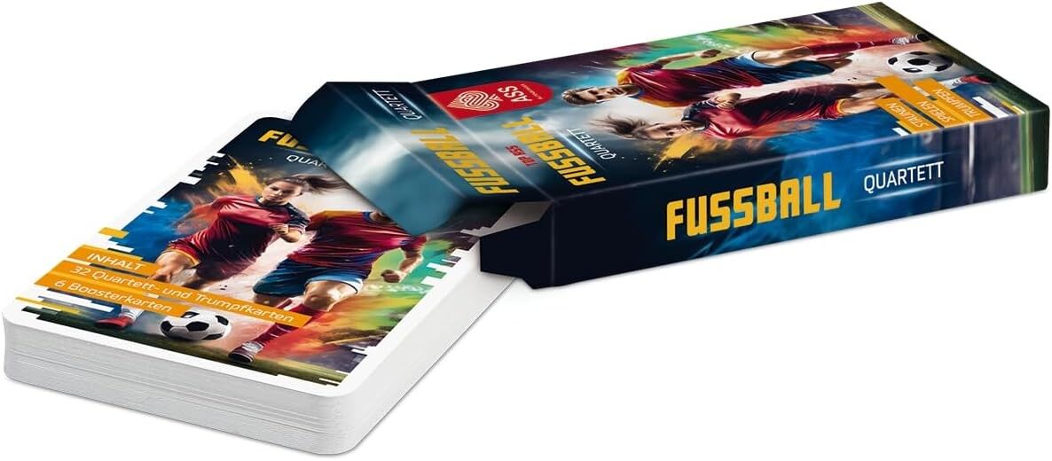 Quartett spielen in einer völlig neuen Dimension: Brasilien gegen Argentinien und Deutschland gegen England - mit dem spannenden TOP ASS Giga Quartett Fußball können die explosivsten Fußball-Duelle am heimischen Spieltisch ausgetragen werden. Wer kann den höch...