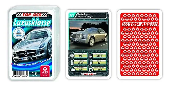 Lieferumfang: 32 Karten und ein Deckblatt mit Spielregel (59x91 mm) Ein Hauch von Luxus umweht die schönsten und teuersten Autos dieser Welt: Im TOP ASS Auto-Quartett Luxusklasse sind die begehrtesten und luxuriösesten Autos der Welt versammelt und erstrahlen ...