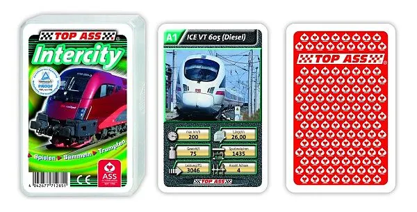 Lieferumfang: 32 Karten und ein Deckblatt mit Spielregel (59x91 mm) Superzüge wie der Intercity und der TGV verzeichnen Geschwindigkeitsrekorde: Im Nu ist der Bestimmungsort erreicht! Für die aktuelle Edition wurde das Trumpf- und Quartettspiel Intercity von A...