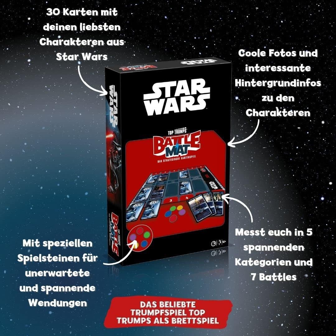 Boba Fett, Captain Phasma und Chewbacca sind deine Lieblingshelden? Und du spielst gerne Quartett? Dann bringe deinen Spaß auf ein neues Level mit der brandneuen TOP TRUMPS Battle Mat Star Wars! Erhalte zu diesem besonderen Spielfeld das beliebte TOP TRUMPS Di...