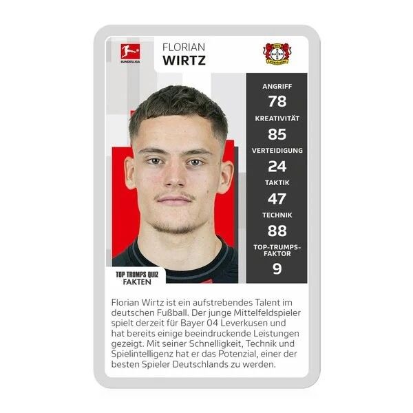 Aufgepasst, Fußballfans: Passend zum Fußballjahr 2024 gibt es nun das TOP TRUMPS Collectable Bundesliga Edition, mit dem der Spielspaß auch nach Abpfiff weitergeht. Das Spiel vereint Spielspaß mit Premium-Design. Lasst die beliebtesten Spieler der Bundesliga i...