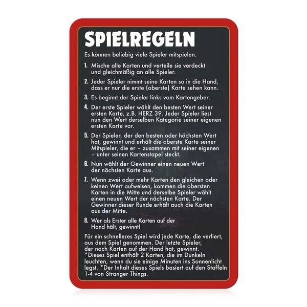 Top Trumps Collectables - Stranger Things Wenn du nicht nur Karten- oder Brettspiele magst, sondern auch die Schattenwelt liebst, ist dieses Stranger Things Top Trumps Quiz genau das Richtige für dich! Passend zu anderem Stranger Things Merchandise, wie Bücher...