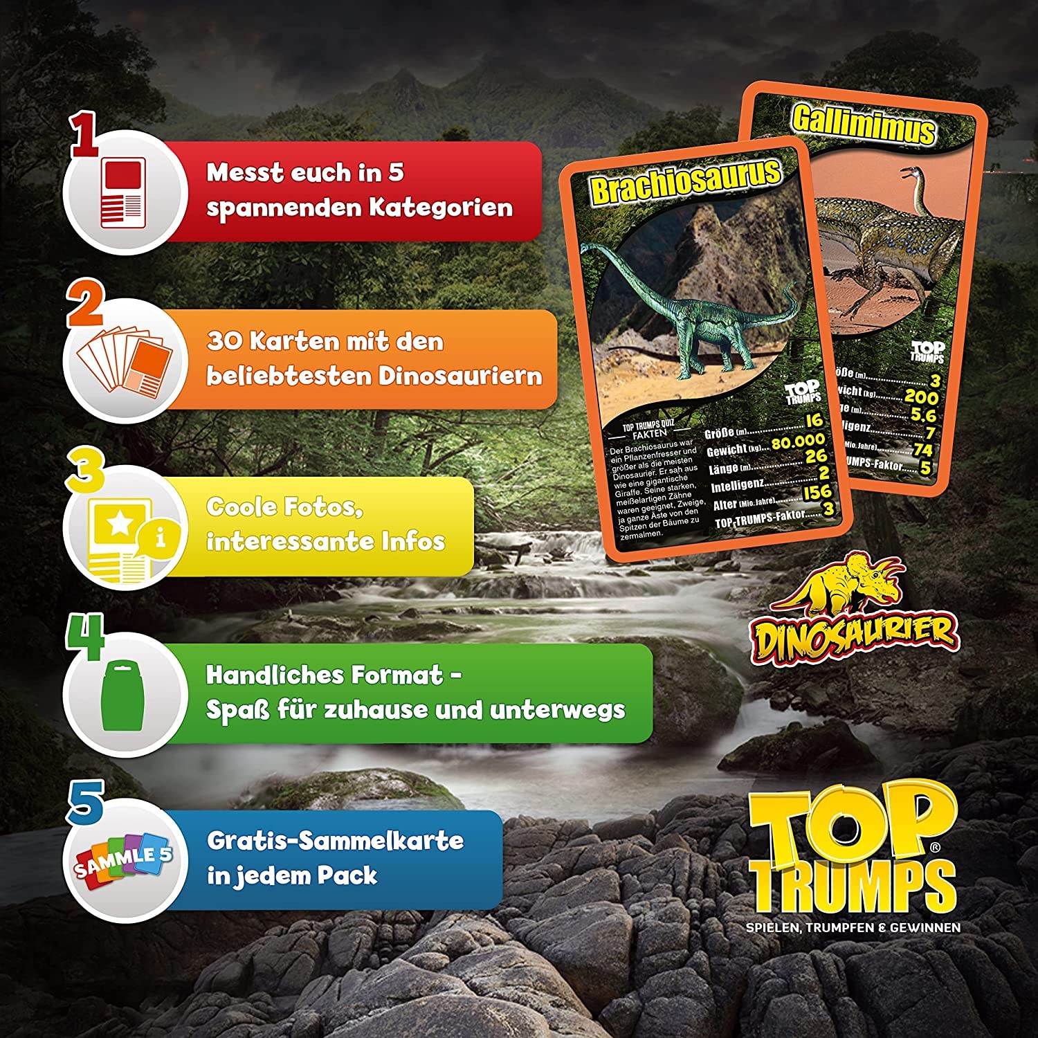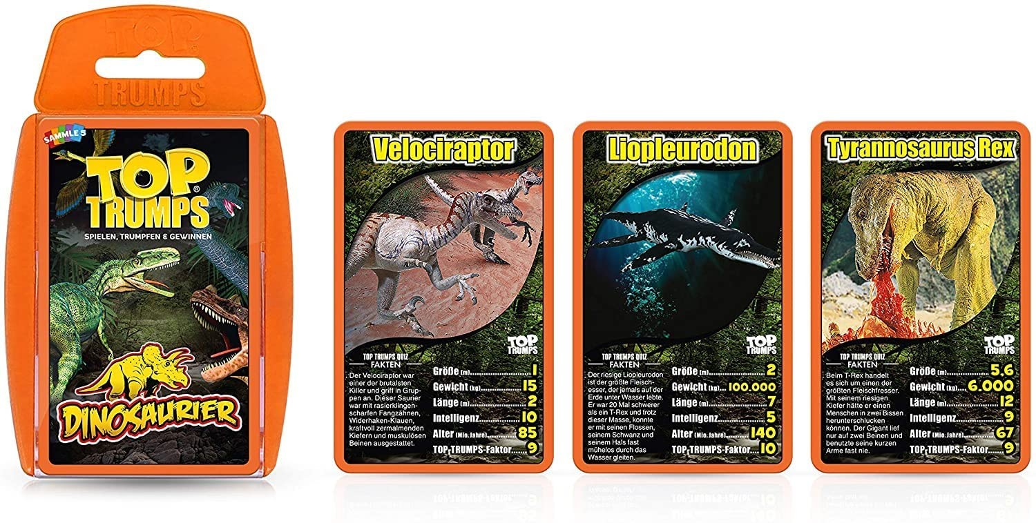 Spielen und entdecken! Top Trumps Dinosaurier ist das Trumpfspiel für alle, die mehr über die Welt der Dinosaurier wissen möchten. 30 Karten mit coolen Motiven, findigen Statistiken und spannenden Hintergrundinformationen den Top Trumps-Fakten sorgen für beson...