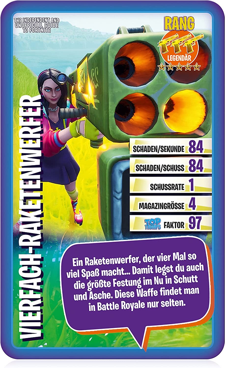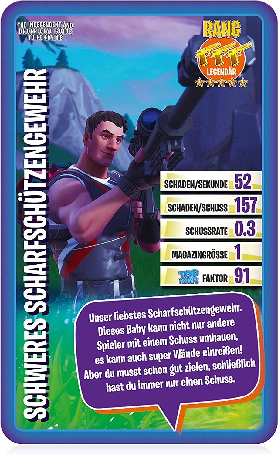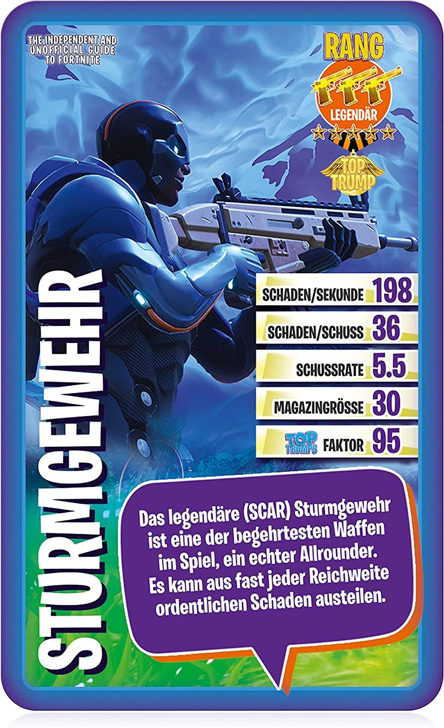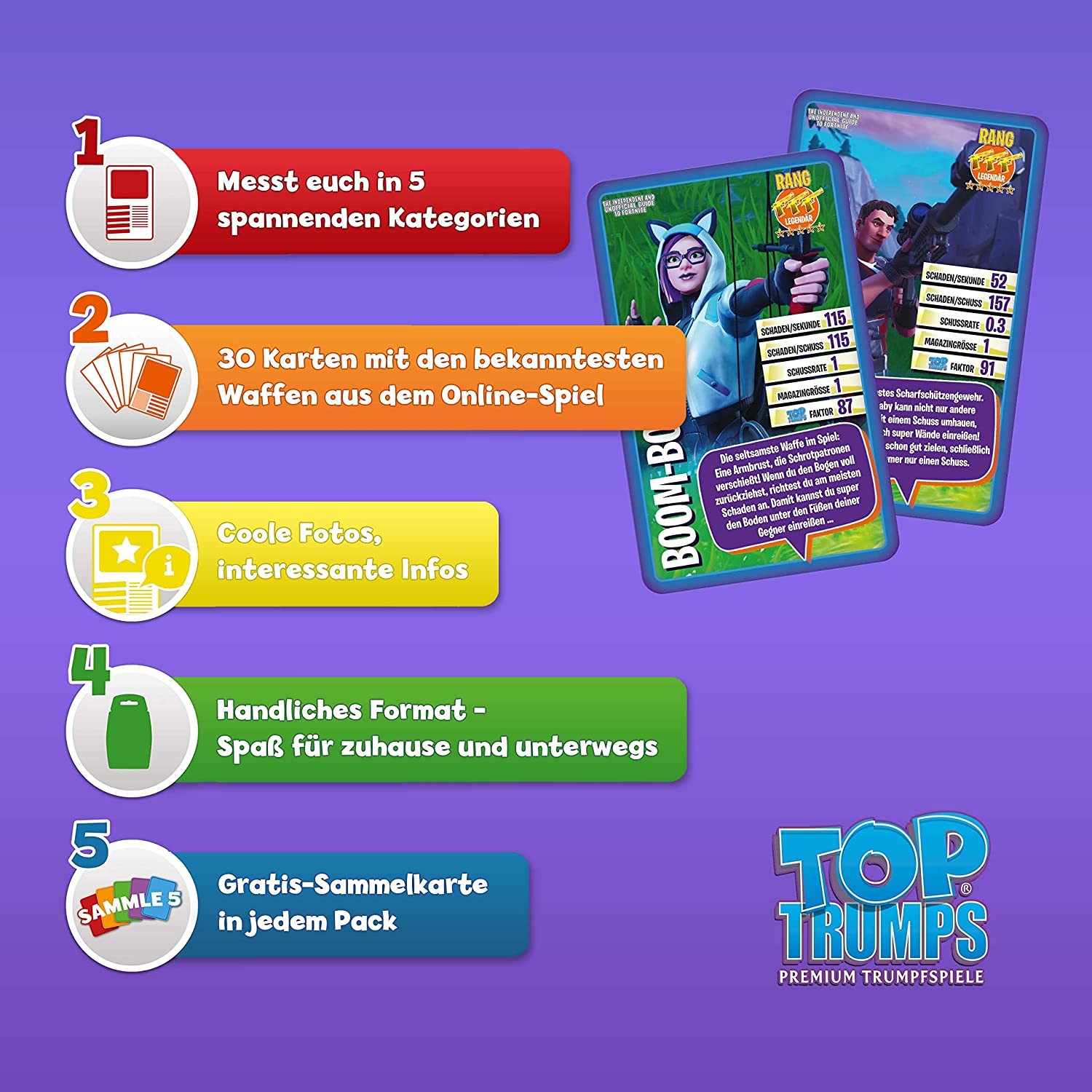 Spielen und entdecken! Top Trumps The Independent and Unofficial Guide to Fortnite ist das Trumpfspiel für alle, die mehr über die beliebtesten und stärksten Waffen aus Fortnite wissen möchten. 30 Karten mit coolen Motiven, findigen Statistiken und spannenden ...
