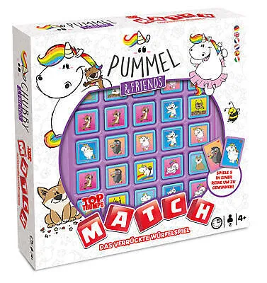 MATCH Pummeleinhorn: Tauche ein in ein pummeltastisches Abenteuer und ins MATCH Pummeleinhorn, das rasante Würfelspiel der etwas anderen Art. Das liebenswerte Einhorn versüßt sofort den Alltag. Ob Pummel, Cookie oder auch Bisu wer es zuerst schafft, 5 Würfel s...