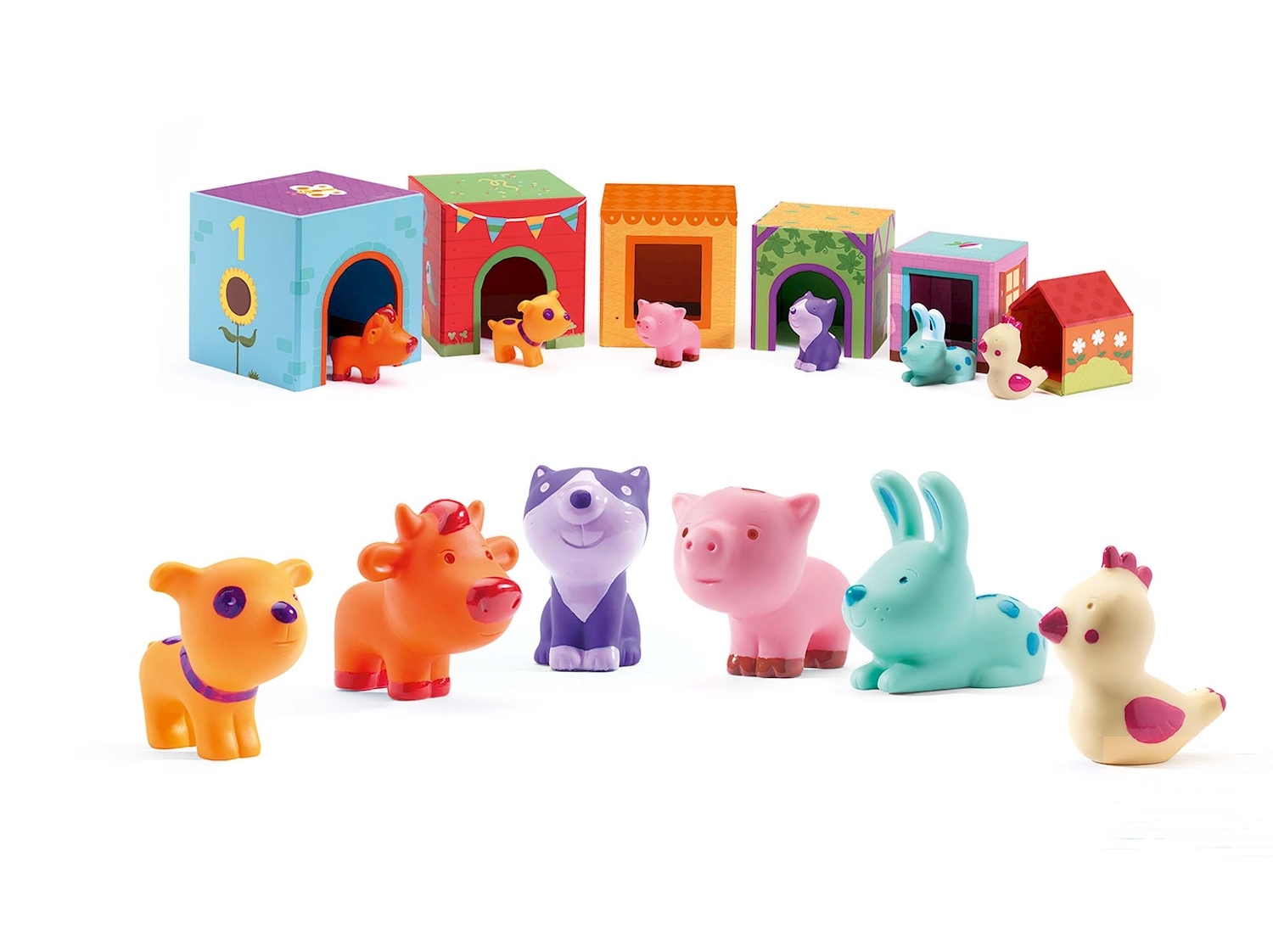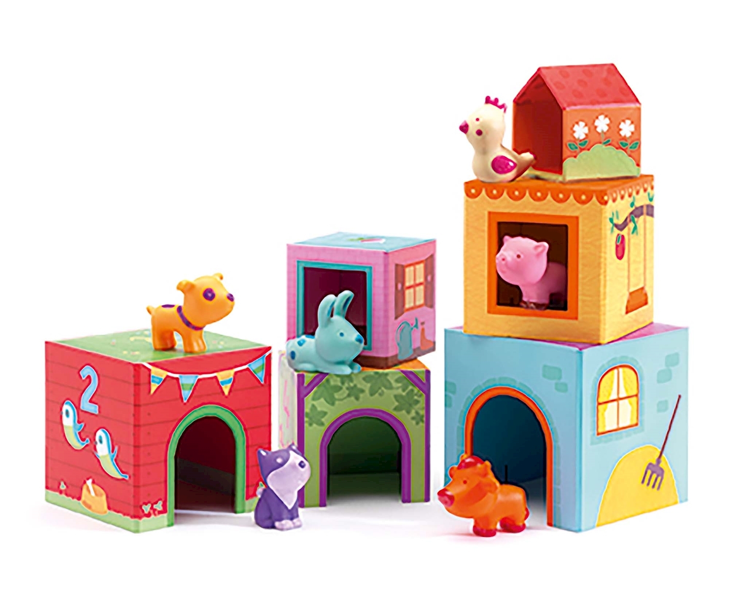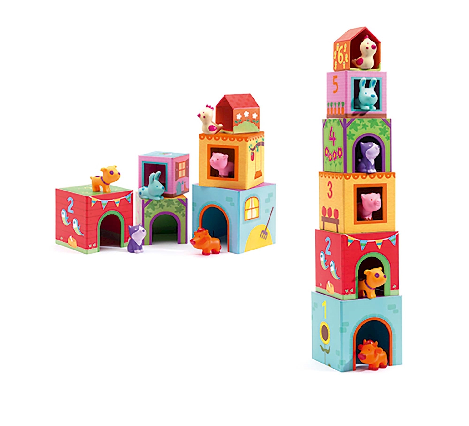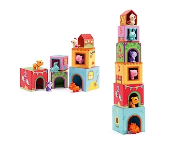 6 Blöcke / 6 Tiere ab 18 Monaten Dieser Stapelturm ist ein fröhlicher Spiel-und Lernspass. Zu jedem Block gibt es ein dazugehöriges Tierchen.