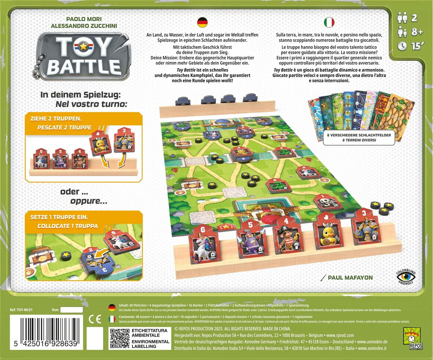 Das Familienspiel Toy Battle für 2 Spieler ist ein schnelles und dynamisches Kampfspiel, das ihr garantiert noch eine Runde spielen wollt. Deine Mission: Erobere das gegnerische Hauptquartier oder sammle möglichst viele Orden, indem du Gebiete einnimmst. Manöv...