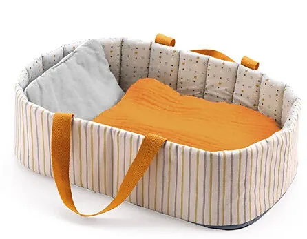 Maschinenwaschbare Stoffteile bei 30grad 36x22x11cm Eine leichte und praktische Tragetasche im schicken Streifendesign und mit weichen Henkeln, mit der die Puppe überallhin mitgenommen werden kann. Ein echtes Kuschelnest mit einer weichen Decke und einem Kisse...