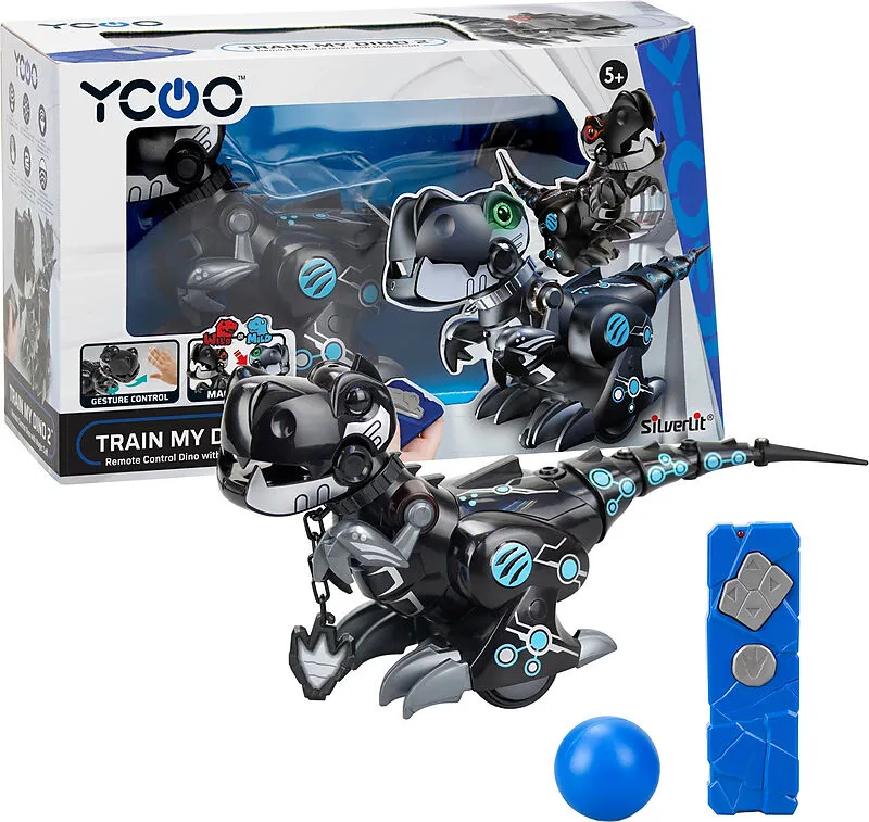 Train My Dino II Der Train My Dino ist ein interaktiver, ferngesteuerter Dinosaurier mit Direkt- und Gestensteuerung für Kinder ab 5 Jahren. Keine Angst, der Dino ist nicht lebendig, aber durch LED-Augen, Soundeffekte und Kieferbewegungen wird das Spielerlebni...