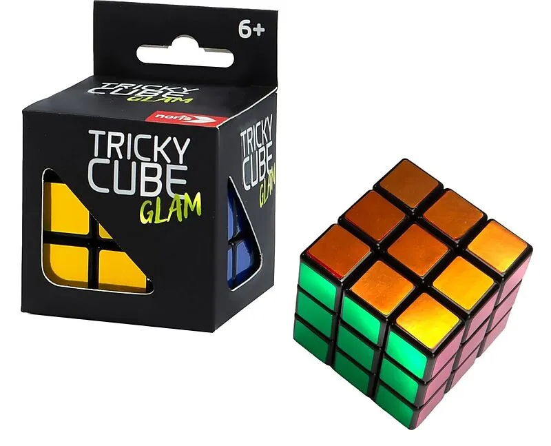 Tricky Cube Glam Trickwürfel zur Förderung des Räumlichkeitsdenkens mit Anleitung, Glanzsticker Das Ziel des Spiels ist es, den Würfel in seine Grundstellung zu bringen. Das heißt, die Steine der Seiten müssen eine einheitliche Farbe ergeben. Maße: 5,5x5,5x5,5...