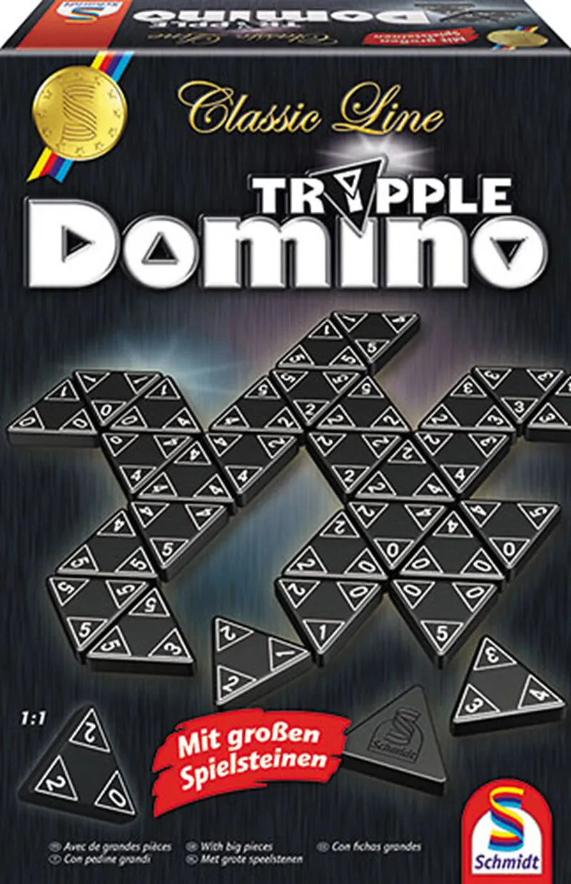 Diese Dominoteile sind dreieckig! So muss nicht nur eine, sondern gleich zwei Zahlen passen. Dadurch ist das Spiel noch abwechslungsreicher und spannender als das bekannte Domino. Ein faszinierendes Familienspiel mit hochwertigen Spielsteinen, Ablagebänkchen u...