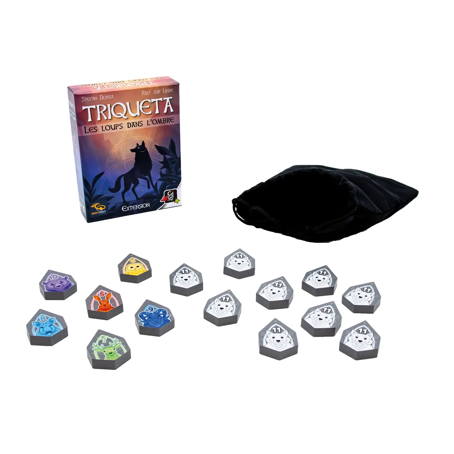 Avec cette extension, des loups amicaux mais timides, s'invitent dans Triqueta. Ils restent dans l'ombre jusqu'à la fin de la partie et valent beaucoup de points lorsqu'ils forment une Triqueta. Serez-vous assez audacieux pour partir à leur recherche? Inclut u...
