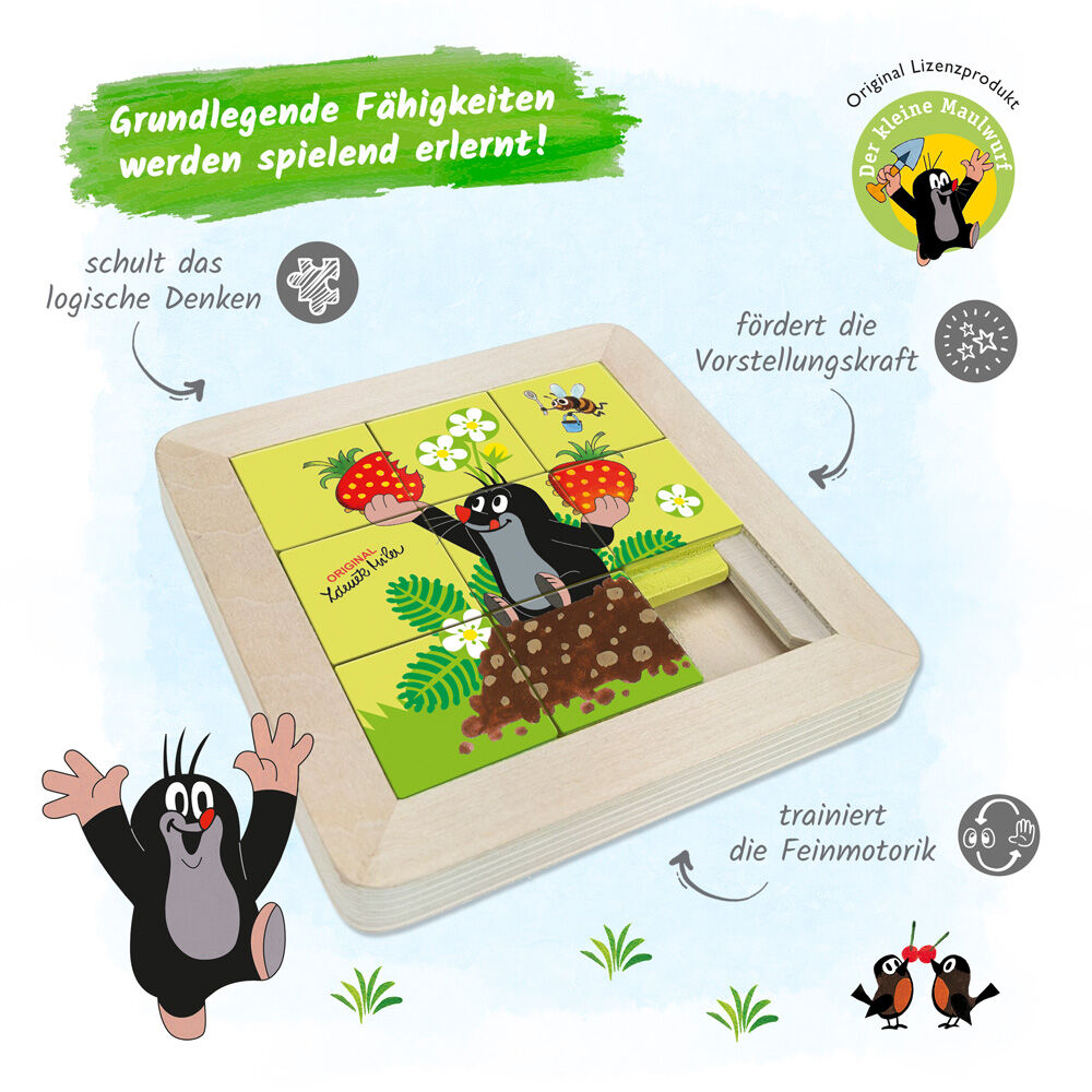 Hier sind Fingerfertigkeiten und Köpfchen gefragt! Dieses tolle Geschicklichkeitsspiel aus Holz schult das logische Denken, fördert die Vorstellungskraft und trainiert die Feinmotorik: Es wird so lange geknobelt und die Kacheln verschoben, bis der kleine Maulw...