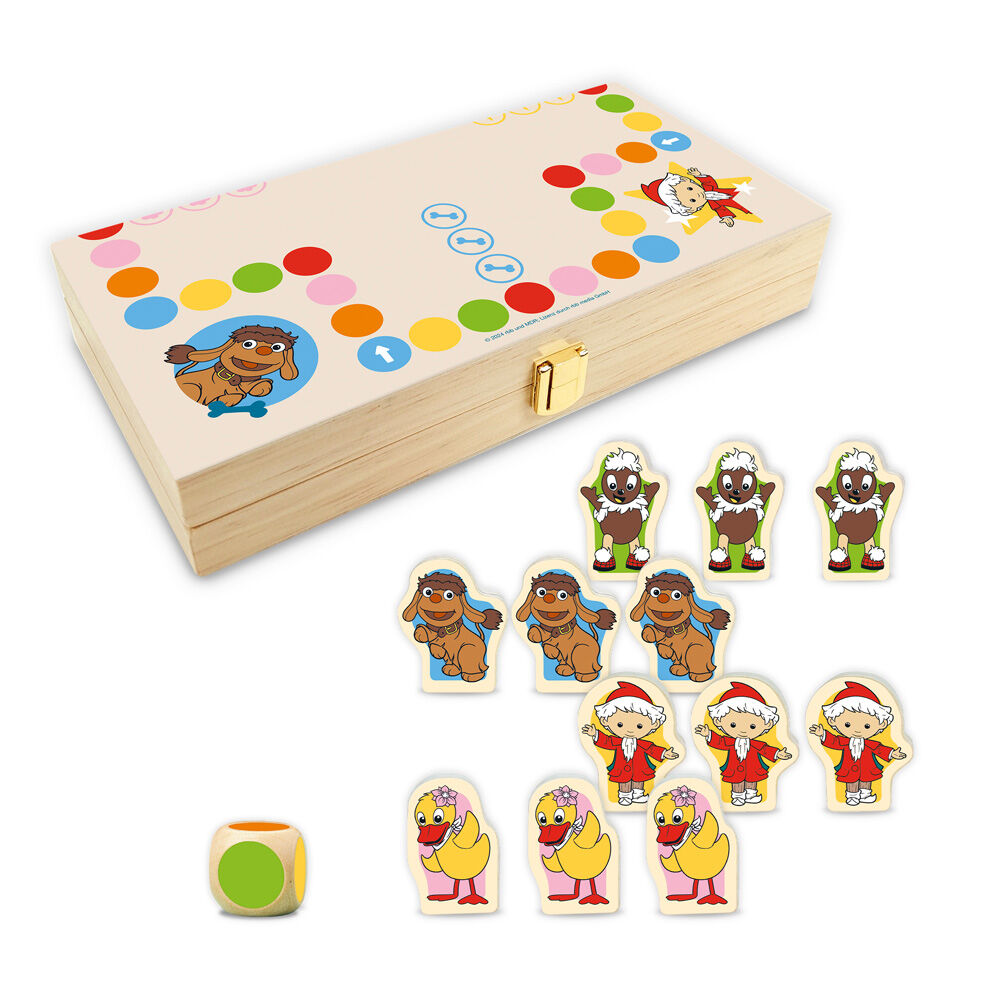 Dieser Spieleklassiker für 2 bis 4 Spieler sorgt für Spaß bei kleinen und großen Sandmännchen-Fans! Bring deine drei Spielfiguren als Erstes nach Hause! Inhalt: Spielbrett (26 x 26 cm) zum Auf- und Zuklappen, zwölf farbige Spielfiguren und ein Farbwürfel.