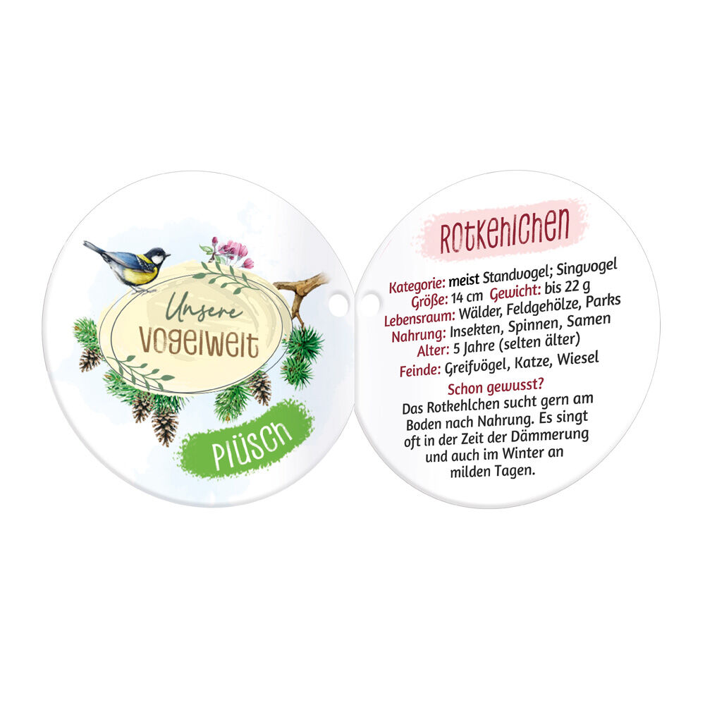 Dieses superweiche Plüsch-Rotkehlchen begleitet kleine und große Vogelfreunde überallhin. Für jede Menge Spiel- und Kuschelspaß!