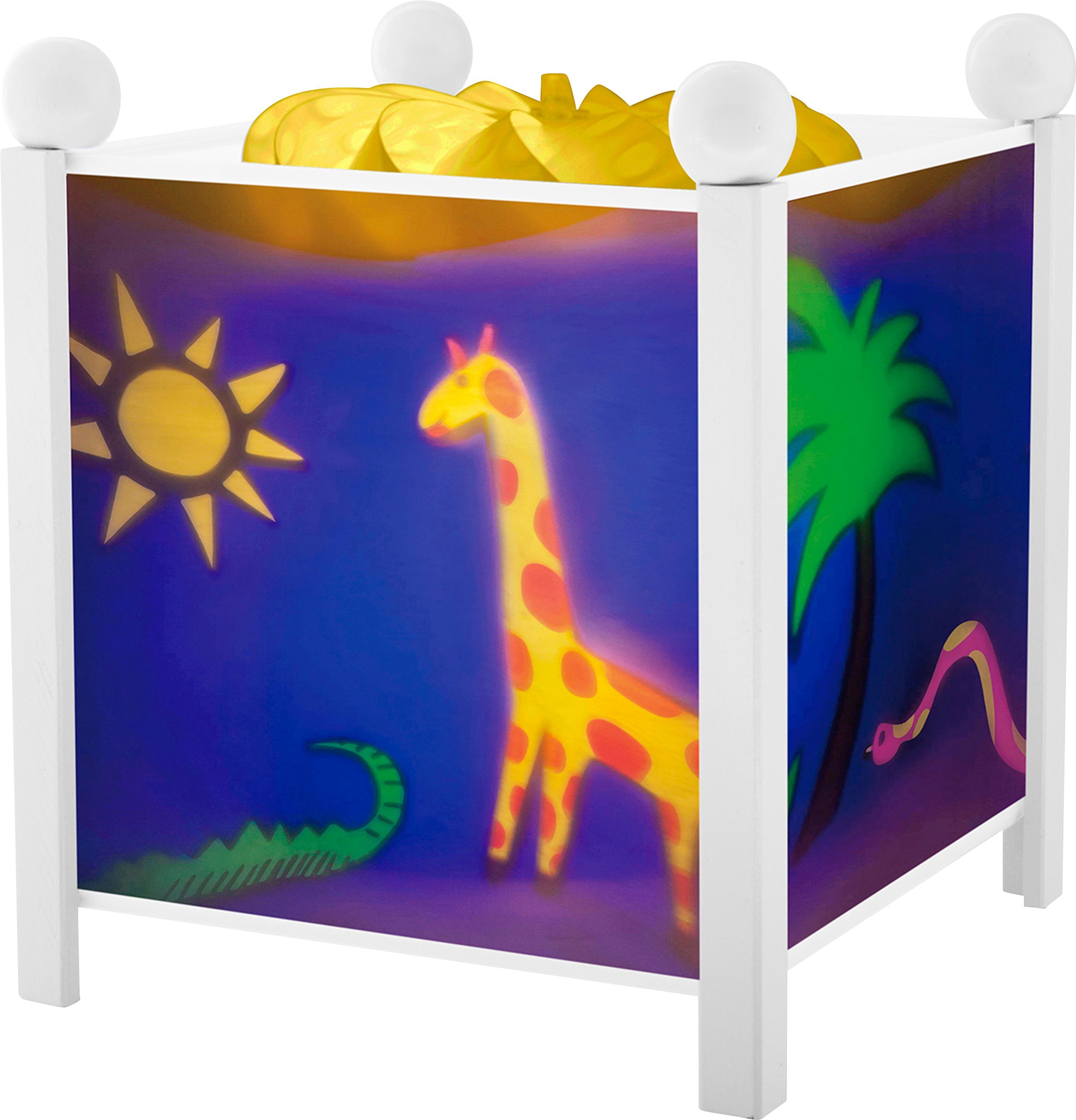 Magische Laterne Dschungel 12V, weiß NACHTLICHT: Die ''Magische Laterne'' ist ein traditionelles Nachtlicht, das von einer sehr alten japanischen Tradition inspiriertwurde. Es beruhigt Kinder ab dem Zeitpunkt der Geburt beim Einschlafen. SCHLAFLICHT:Eingeschal...