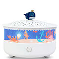 Nachtlicht mit Musik und Sternenhimmelprojektion. Nach Belieben kann die Drehung der Figur, die dezente Projektion von Sternen sowie ein manuell aufziehbares Schlaflied (Dauer 2 min 30 sek) aktiviert werden. Um die Batterie zu schonen, schaltet sich das Nachtl...