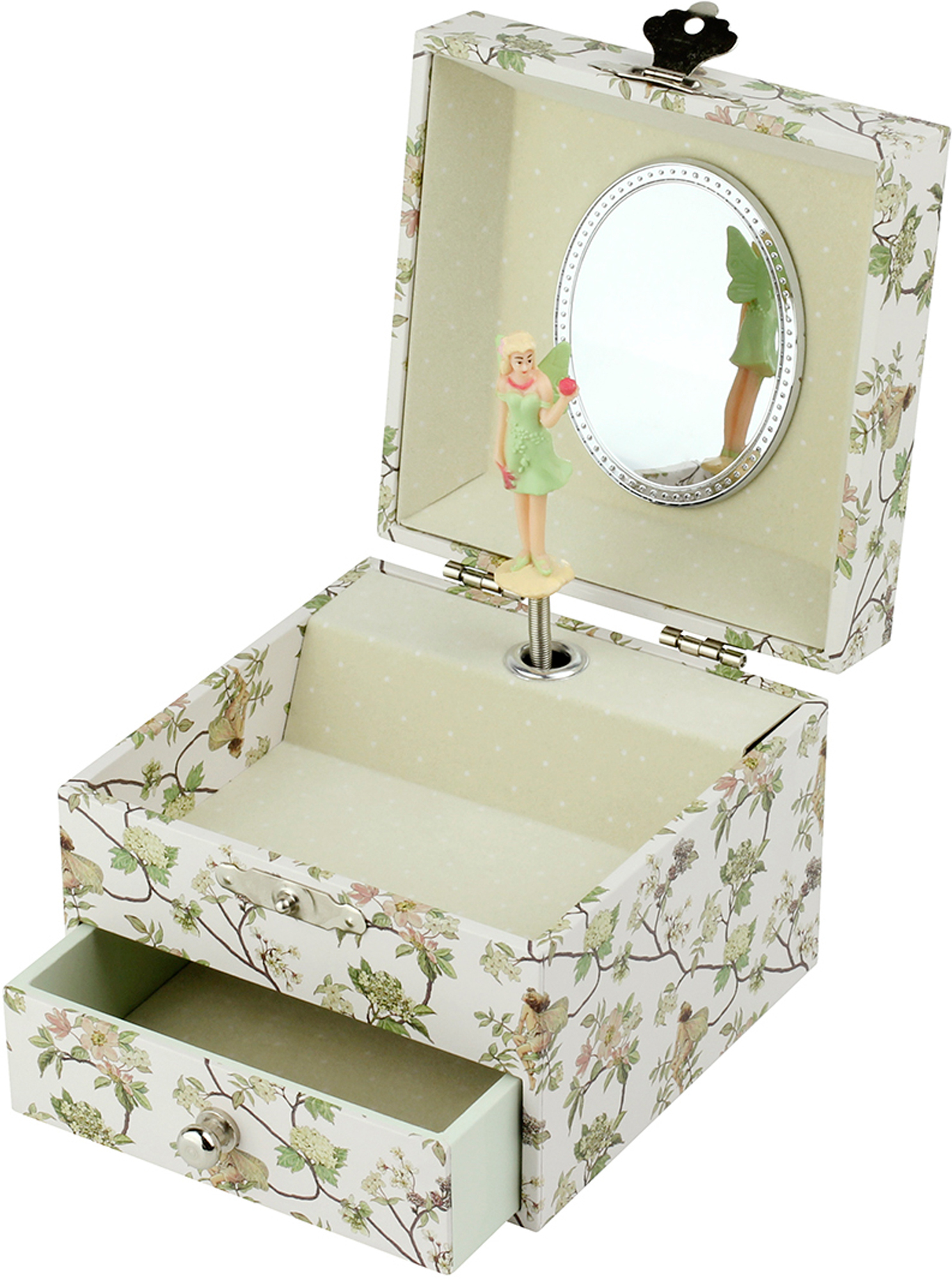 Eine Musikbox zur Aufbewahrung kleiner Schätze & Geheimnisse. Mit einer kleinen Schublade Betätigen Sie die Kurbel und die Figur erwacht zum Klang der Musik wie von Geisterhand zum Leben! Ideal ab der Geburt: schöne zeitlose Dekoration eines Kinderzimmers und ...