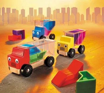 Eine Wagenladung voller Puzzlespaß! - Lademeister, alles packen, der LKW muss raus! Drei fröhliche LKW müssen für die nächste Fahrt vorbereitet werden. Kannst Du alle Ladestücke so aufladen, dass sie genau auf die Ladeflächen passen? Trucky kann prima an die E...