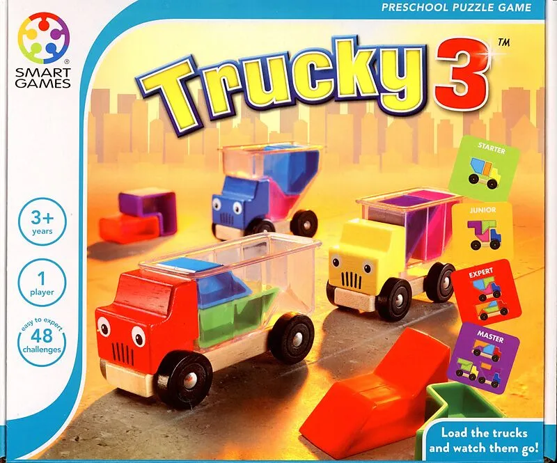 Eine Wagenladung voller Puzzlespaß! - Lademeister, alles packen, der LKW muss raus! Drei fröhliche LKW müssen für die nächste Fahrt vorbereitet werden. Kannst Du alle Ladestücke so aufladen, dass sie genau auf die Ladeflächen passen? Trucky kann prima an die E...