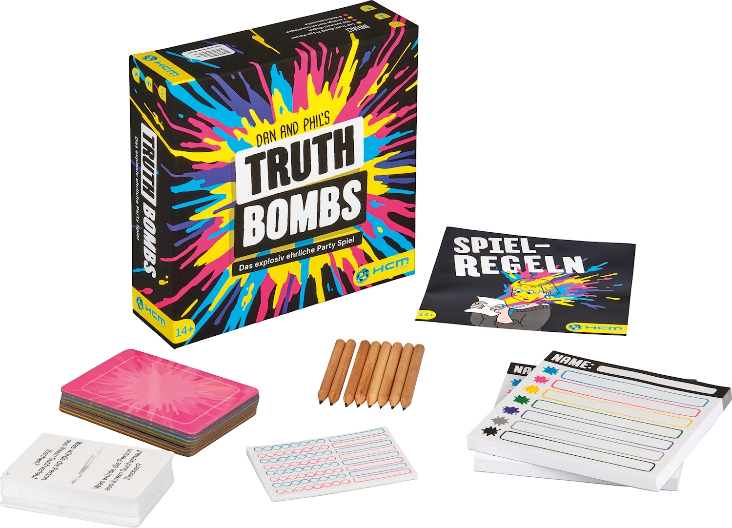 Wer findet die kreativsten Antworten? Wer kennt seine Mitspieler am besten? Finde es heraus mit Truth Bombs, dem gnadenlos ehrlichen Spiel. Stelle deinen Mitspielern bis zu 140 Fragen und lass dir Geheimnisse über deine Mitspieler entlocken. Inhalt Inhalt: 140...