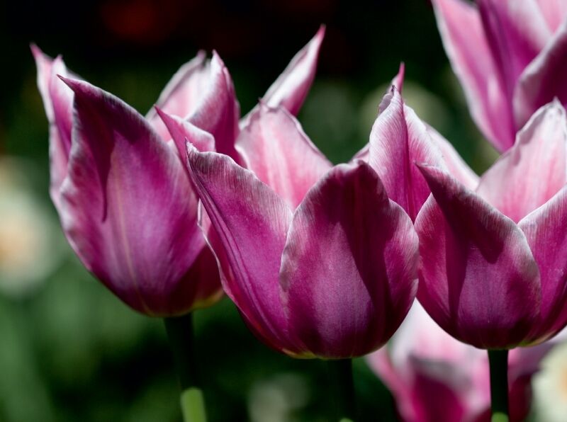 Wohl mit die beliebtesten Frühlingsblumen überhaupt sind die Tulpen. Ihre Blütenblätter können gefedert oder geflammt sein. In diesem Kalender zeige ich die Tulpen verschiedenen Farben, mal als Makroaufnahme mal als Beet Pflanze.