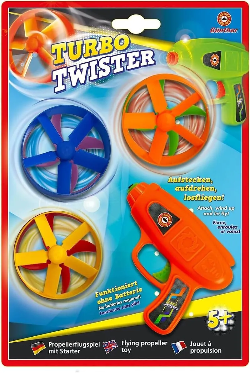 Propeller-Spiel Turboblaster. Mit Starterpistole und 6 Rotoren. Größe: # Rotor 6,5 cm. Geeignet ab 5 Jahren.