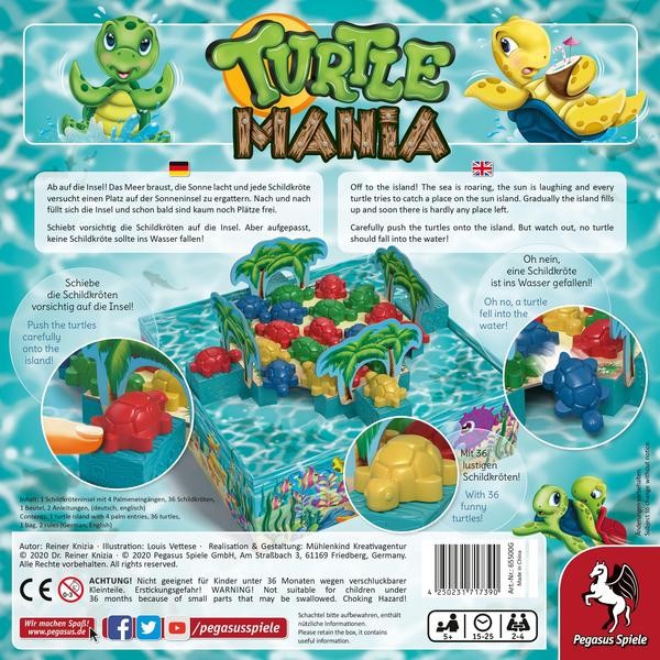 Turtle Mania (Kinderspiel). Es ist ein wunderschöner Tag auf der Sonneninsel "Turtle Island". Verständlicher Weise wollen sich die Schildkröten lieber am warmen Sandstrand tummeln als im kalten Wasser, doch leider ist nicht genug Platz für alle. In Turtle Mani...