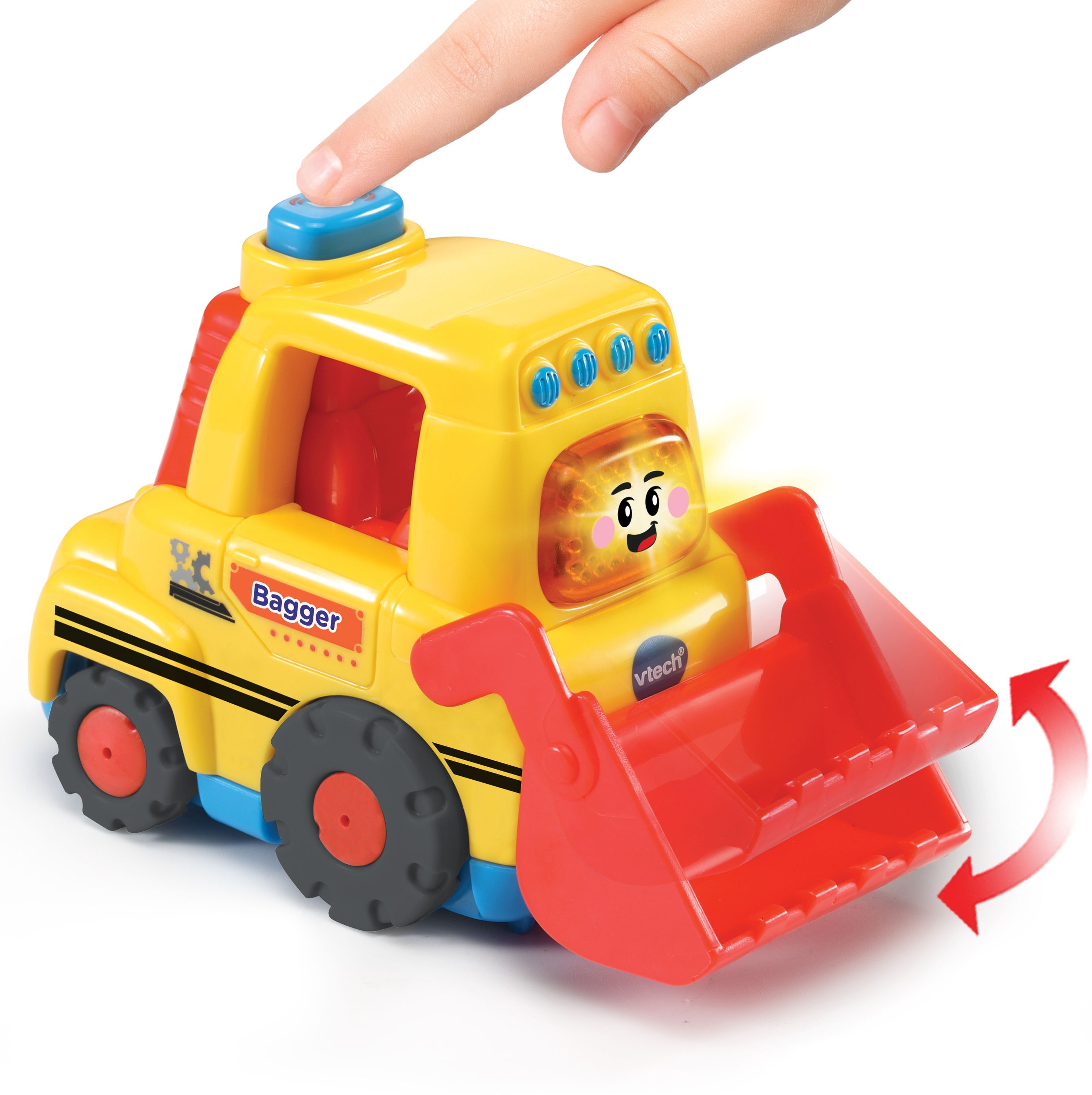 Vtech 80-507804 Tut Tut Baby Flitzer - Bagger Hallo! Ich bin ein bärenstarker Bagger! Spricht fröhliche Sätze und macht lustige Geräusche Zusätzliche Taste löst tolle Effekte aus Spielt Melodien und Lieder Eine leuchtende Taste zum Drücken Reagiert a...